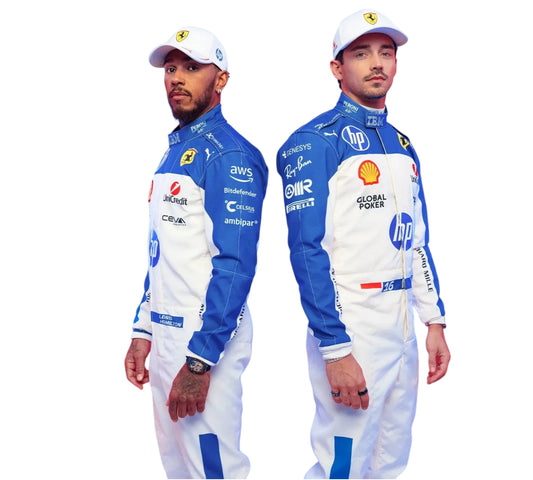 New 2025 Scuderia Ferrari HP Miami Grand Prix Charles Leclerc & Lewis Hamilton F1 Team Replica Racing Suit
