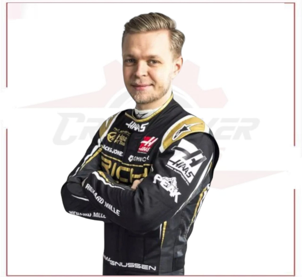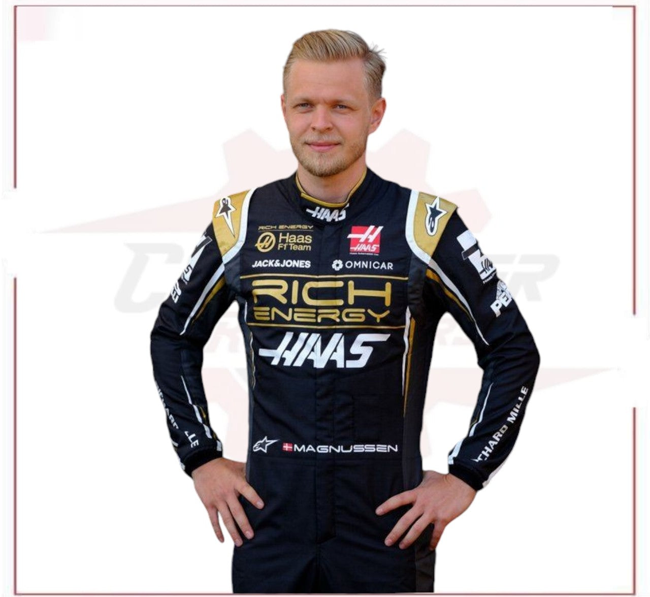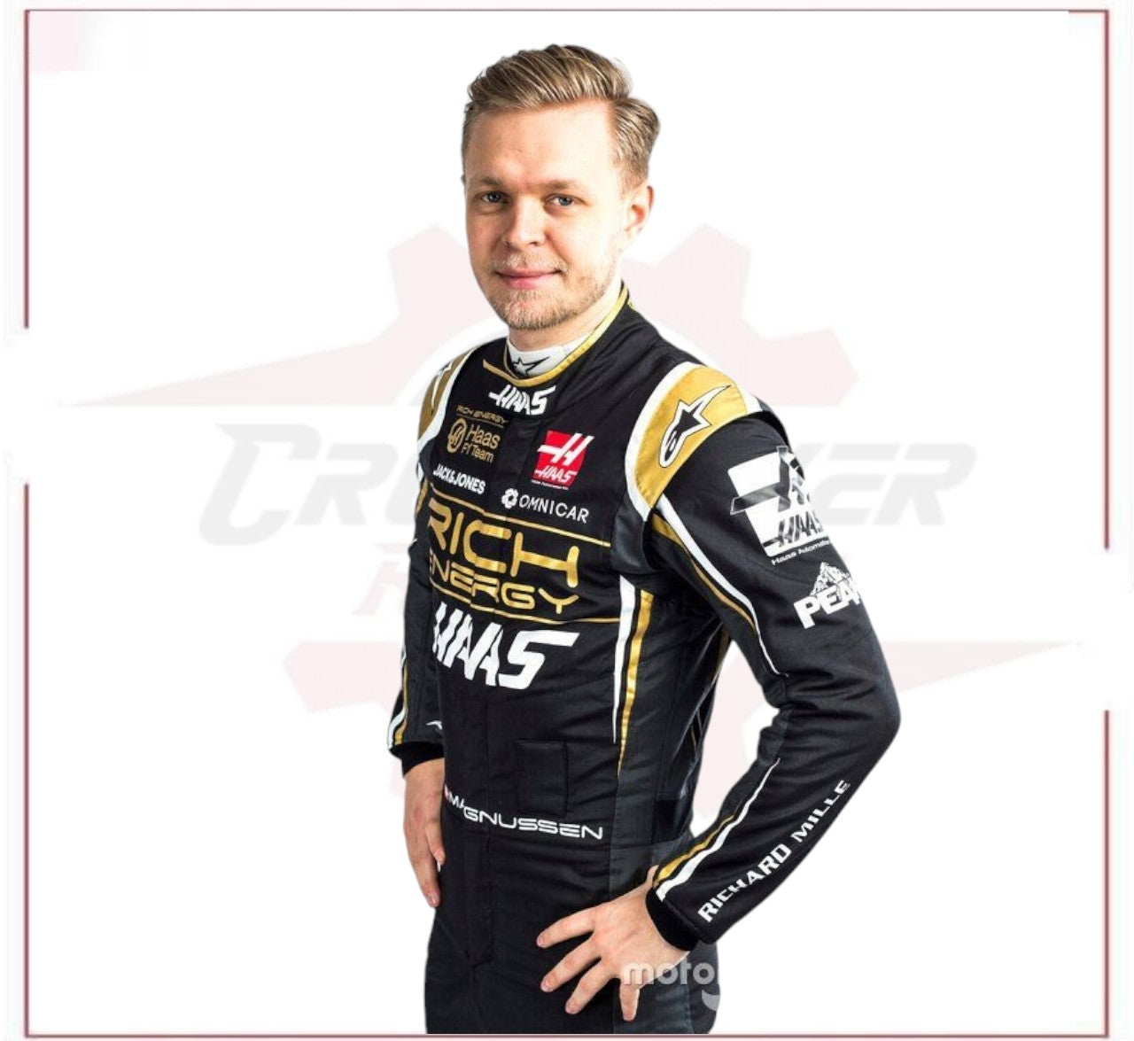 Experience the state-of-the-art technology and design of the 2019 Kevin Magnussen Haas F1 Race Suit. Crafted using expertly engineered materials and specially-developed aerodynamic designs, this race suit is F1-ready and provides the highest levels of performance and comfort. New Kevin Magnussen Haas F1 Team Race Suit.