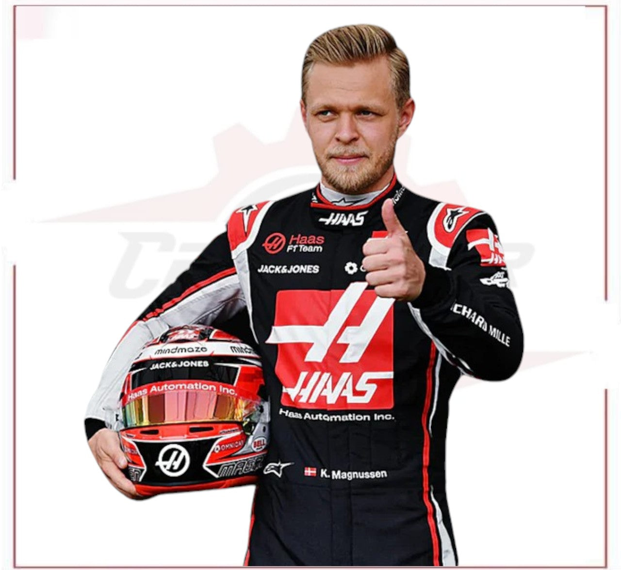 As an expert in the F1 industry, I present you the Kevin Magnussen F1 Haas F2020 Race Suit. This suit features design elements and materials specifically chosen to provide optimal comfort and performance during races. With its sleek design and advanced technology, this suit is a must-have for any F1 racing enthusiast. Take your racing experience to the next level with the Kevin Magnussen F1 Haas 2020 Race Suit. 2020 Kevin Magnussen Haas F1 race suit is engineered for peak performance and comfort.