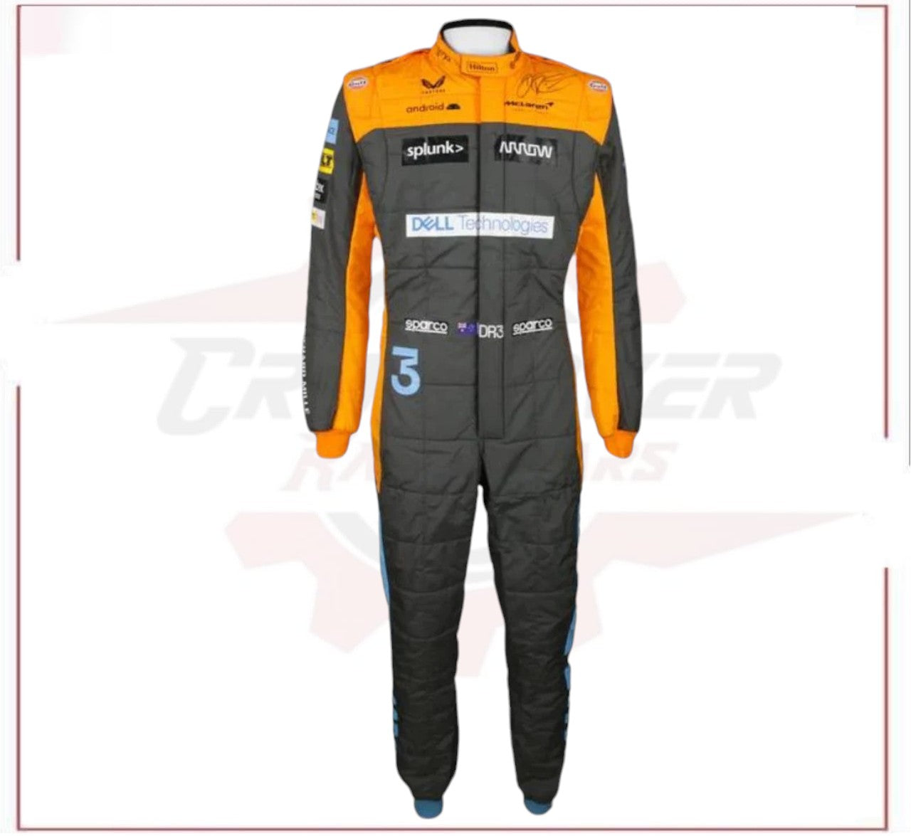 Honor Daniel Ricciardo with this detailed replica of his 2022 McLaren race suit. During the 2022 season, Ricciardo showcased his renowned driving skills and determination, contributing solid performances and points to the team's efforts. Perfect for F1 fans and collectors, this suit captures the experience and charisma of one of Formula 1's most beloved drivers. Daniel Ricciardo McLaren Replica F1 Race Suit.
