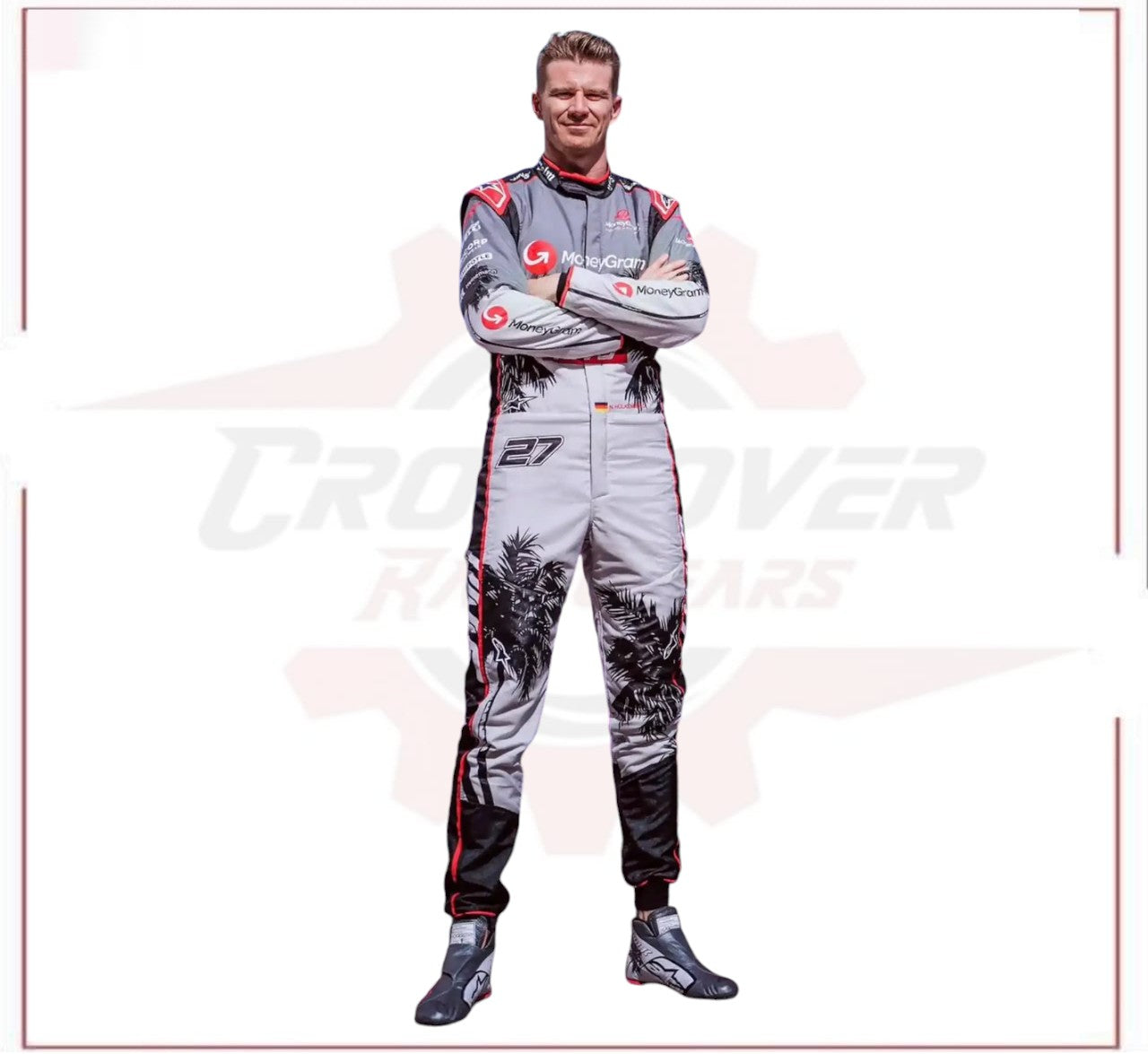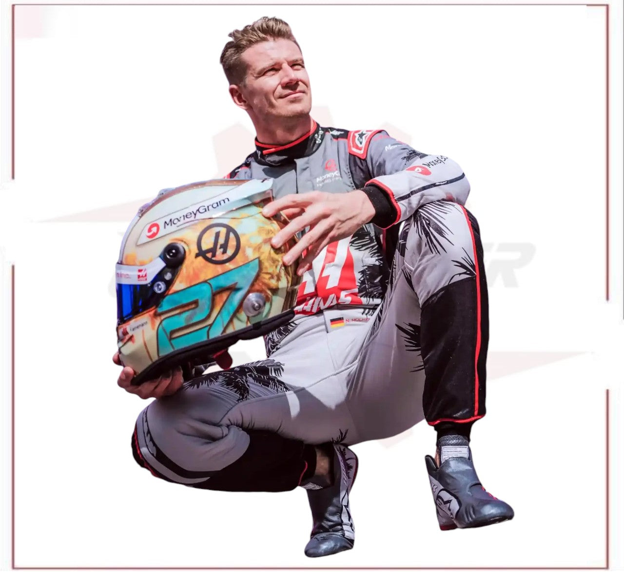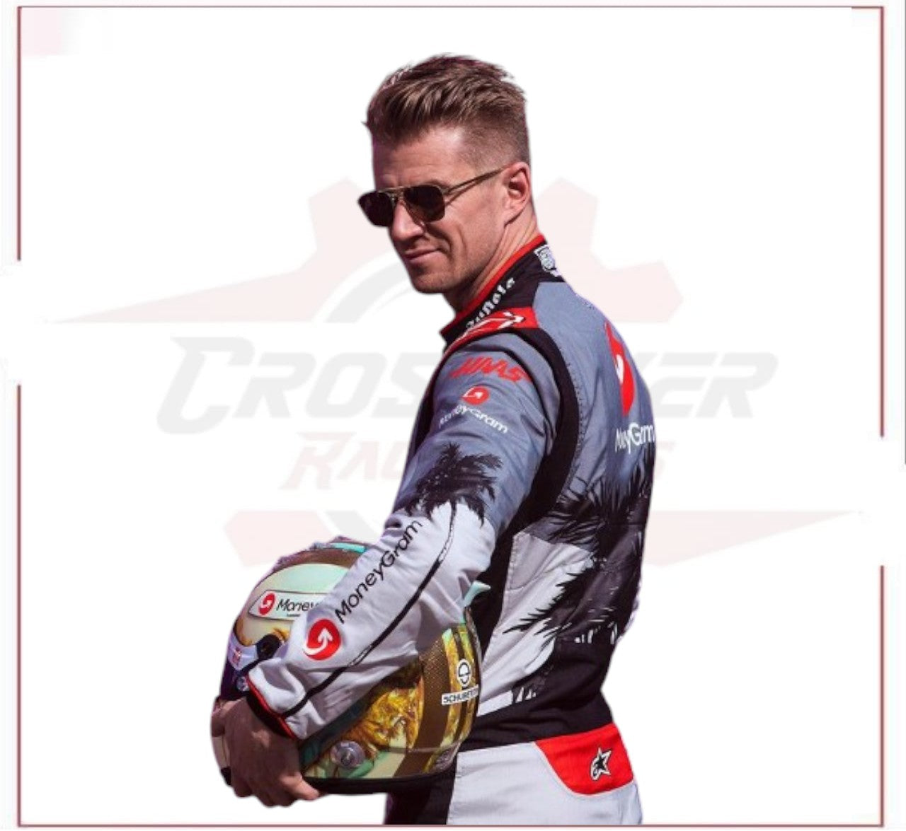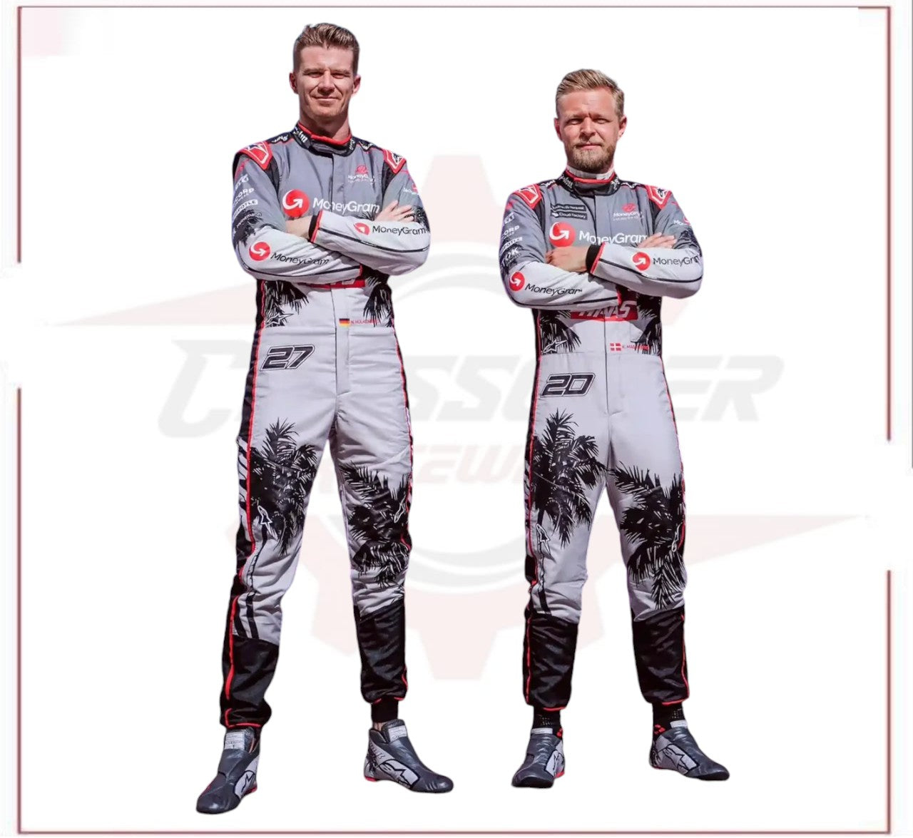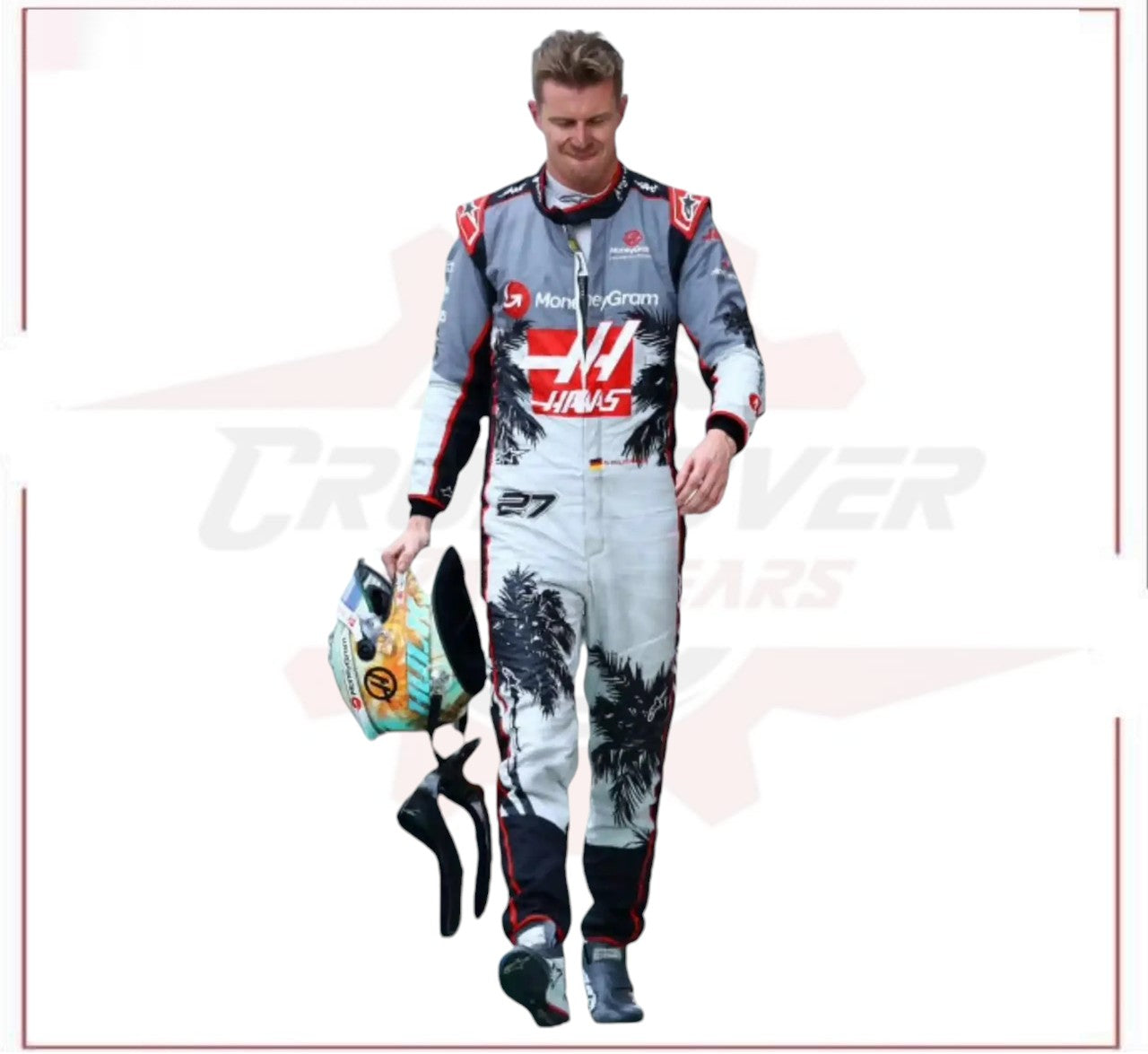 The 2023 Nico Hulkenberg Haas F1 Team Race Suit is a one-of-a-kind ensemble designed for superior performance on the racetrack. It's made from fireproof material and features several air vents that keep you cool in the heat of the competition. With superior breathability and comfort, this race suit will help you stay focused and perform at your best. Nico Hülkenberg New 2023 Miami Grand Prix Haas F1 Team Weekend Replica Racing Suit.