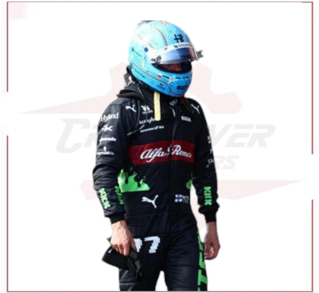 The 2023 Valtteri Bottas Alfa Romeo F1 Team Stake Race Suit for the Belgian GP is a special replica suit that pays tribute to Bottas’s race attire during the Belgian Grand Prix, held at the iconic Spa-Francorchamps circuit. Designed with precision and capturing all elements of Alfa Romeo’s racing heritage, this suit also reflects the unique branding and design elements introduced specifically for the Belgian GP, including prominent sponsorship by Stake, Alfa Romeo’s official betting partner for the season. 2023 New Valtteri Bottas Belgian Grand Prix F1 Team Alfa Romeo Replica Racing Suit.