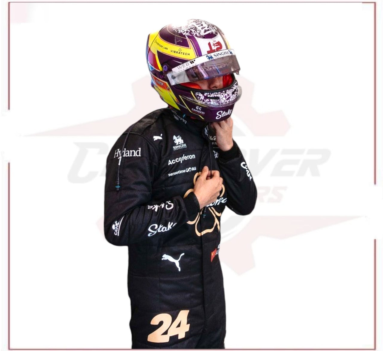 Commemorate Zhou Guanyu's 2023 season finale with the Abu Dhabi Grand Prix Alfa Romeo F1 Team Race Suit. Worn by Zhou during the high-stakes Abu Dhabi Grand Prix, this official suit captures the spirit of competition and precision engineering that defines Formula 1. Constructed from cutting-edge, this suit prioritizes driver safety while delivering comfort and mobility for optimal race performance. The 2023 Zhou Guanyu Alfa Romeo Race Suit is designed for optimal performance and safety on the track.