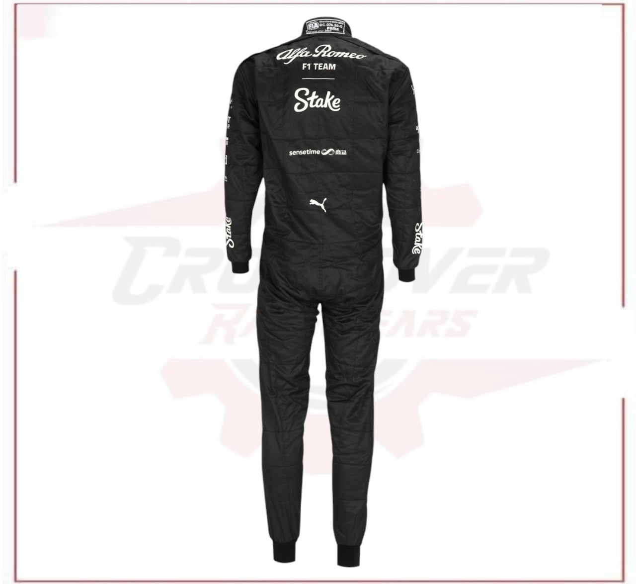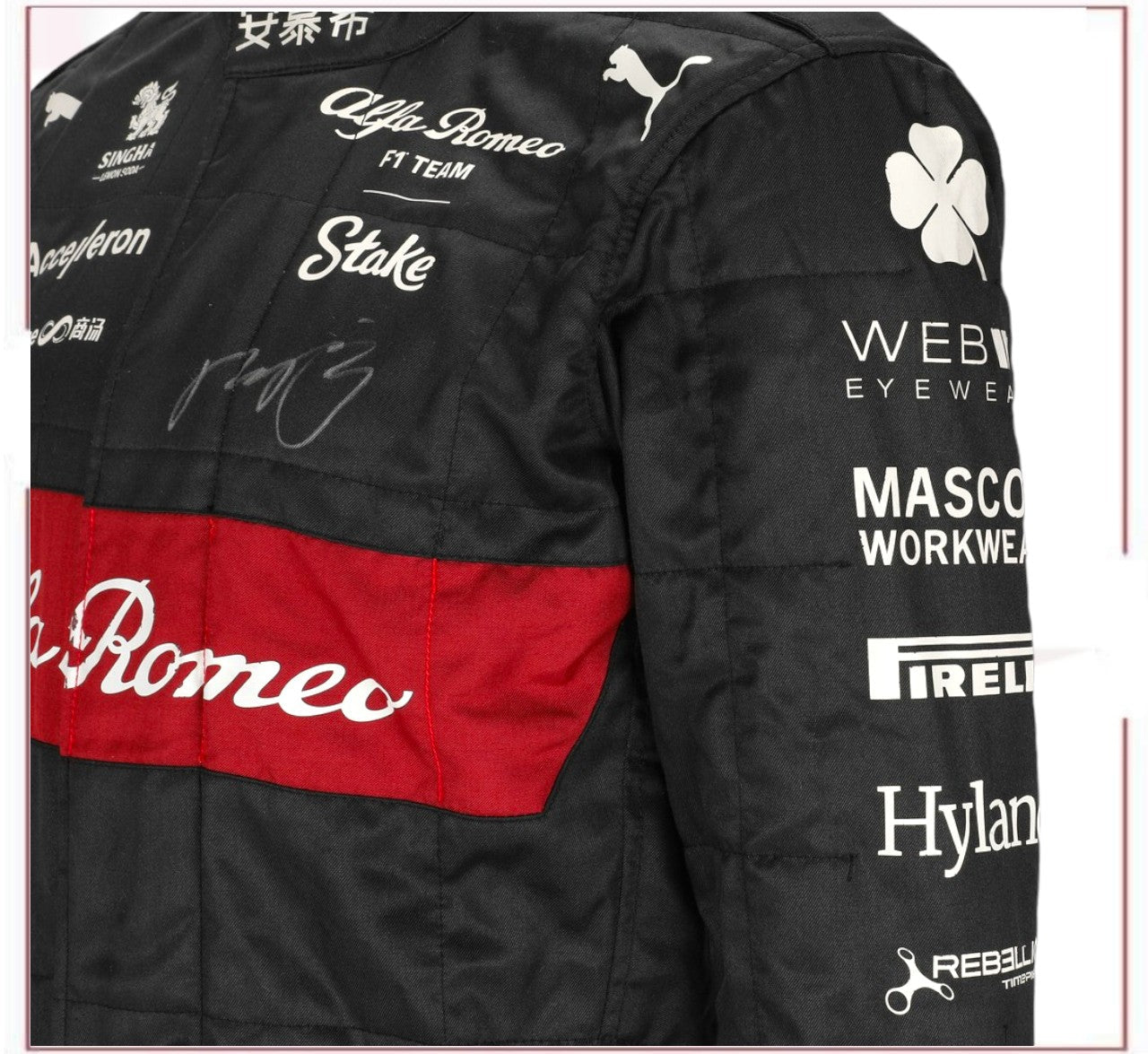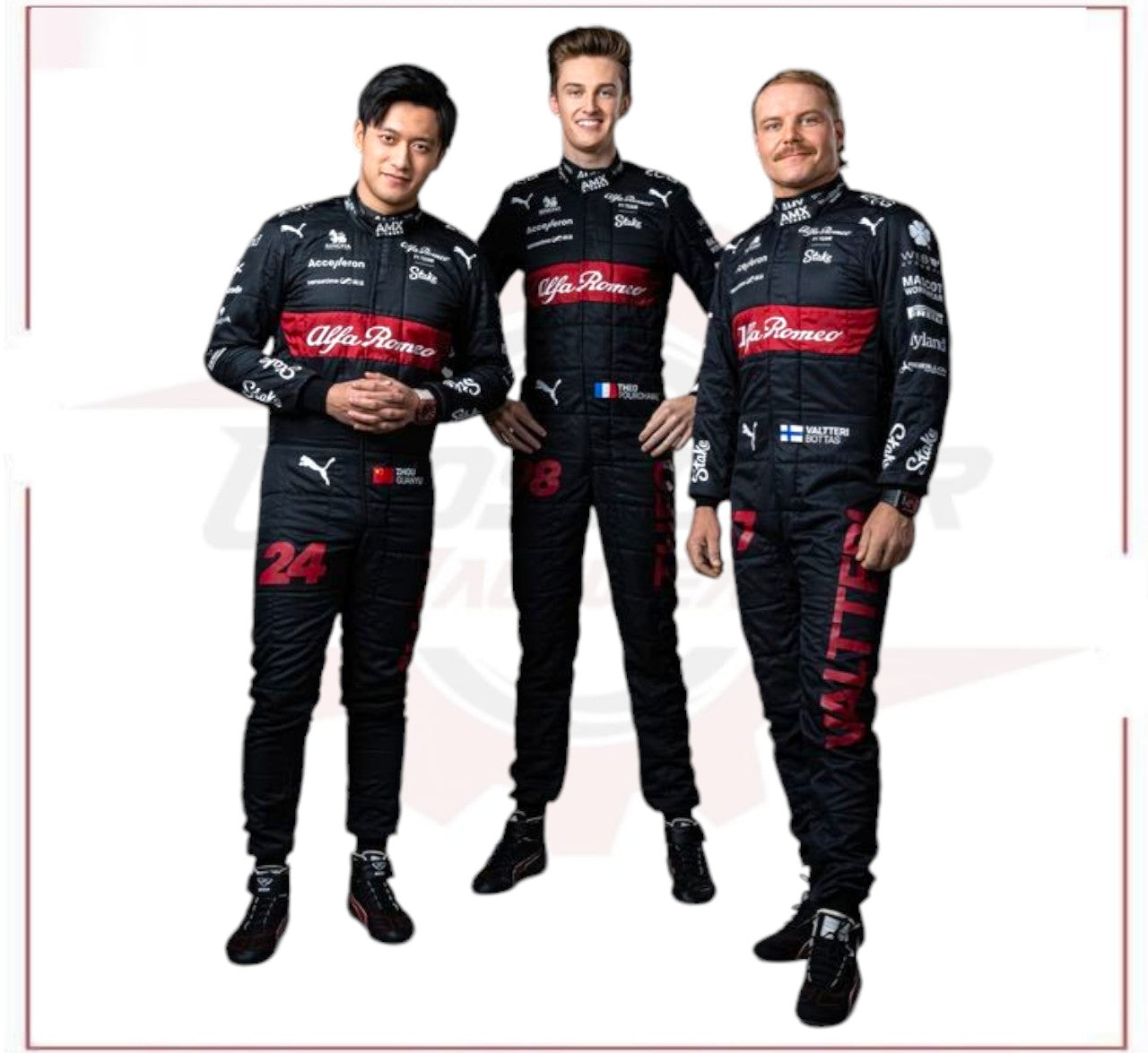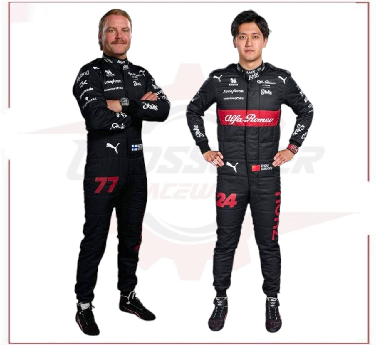 This authentic 2023 Zhou Guanyu replica race suit captures the look and feel of the official Alfa Romeo F1 Team Stake suit. Crafted from durable Shine Cordura fabric with a soft cotton lining, it offers both style and comfort. Detailed with team colors, Alfa Romeo, Stake sponsor logos, and other official branding, this suit brings an accurate representation of Zhou’s race-day gear. Available in all sizes, it includes complimentary personalization options—add your name and national flag at no extra cost. Each suit is quality-checked before shipping, making it a perfect choice for dedicated fans and collectors alike.