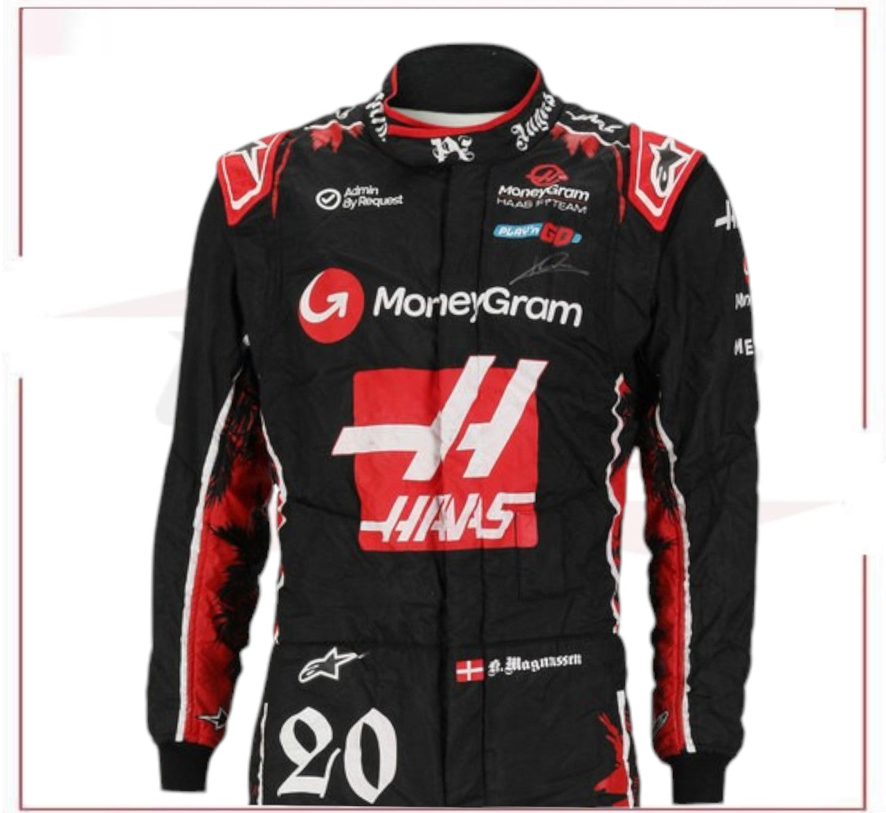 As a professional, you need a race suit that can withstand the intense conditions of the track. Kevin Magnussen 2024 Signed Haas F1 Team Grand Prix Used Suit - Miami GP | F1 Authentics - the ultimate in high-performance racing gear. Designed and tested by industry expert Kevin Magnussen himself, this suit is crafted with top-of-the-line materials for maximum comfort and protection. With its sleek design and advanced features, it's the perfect choice for any serious racer. 2024 Kevin Magnussen Haas F1 Team Race Suit.