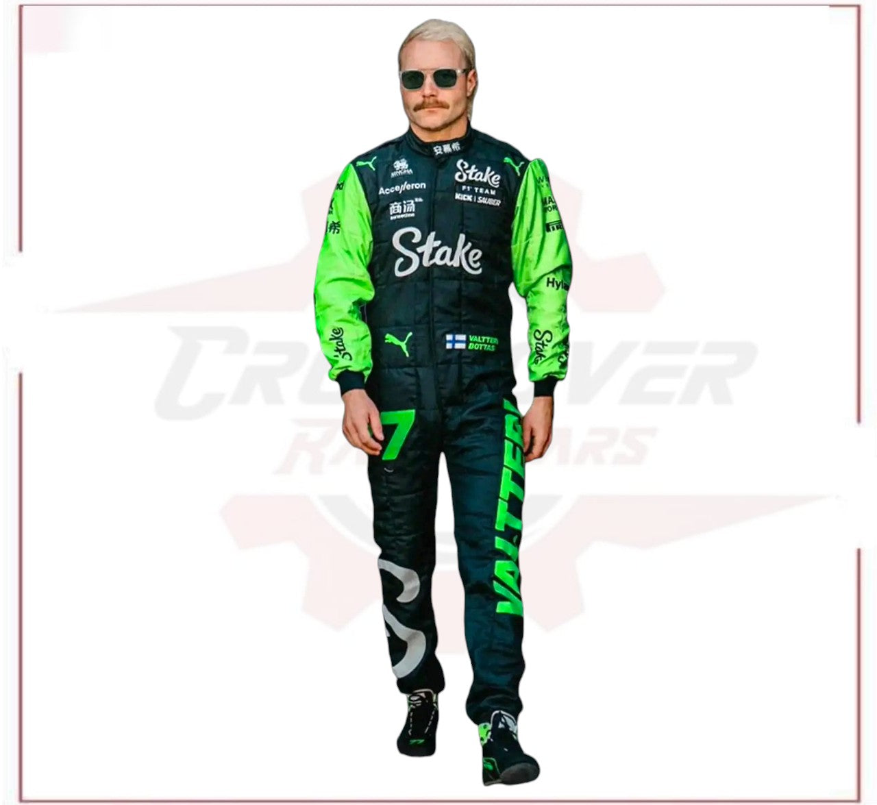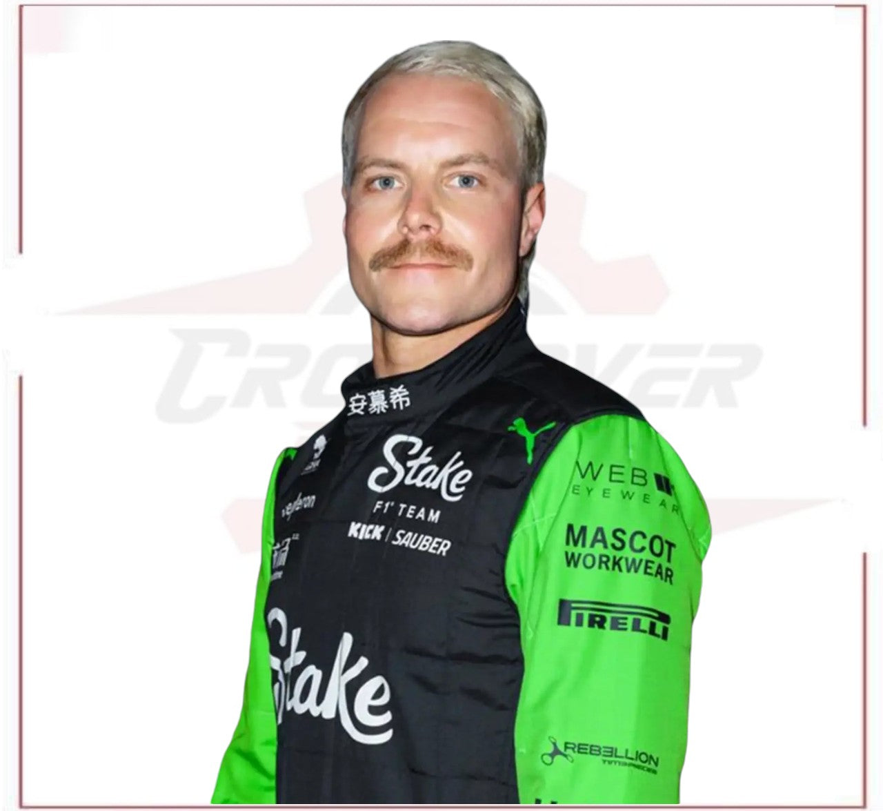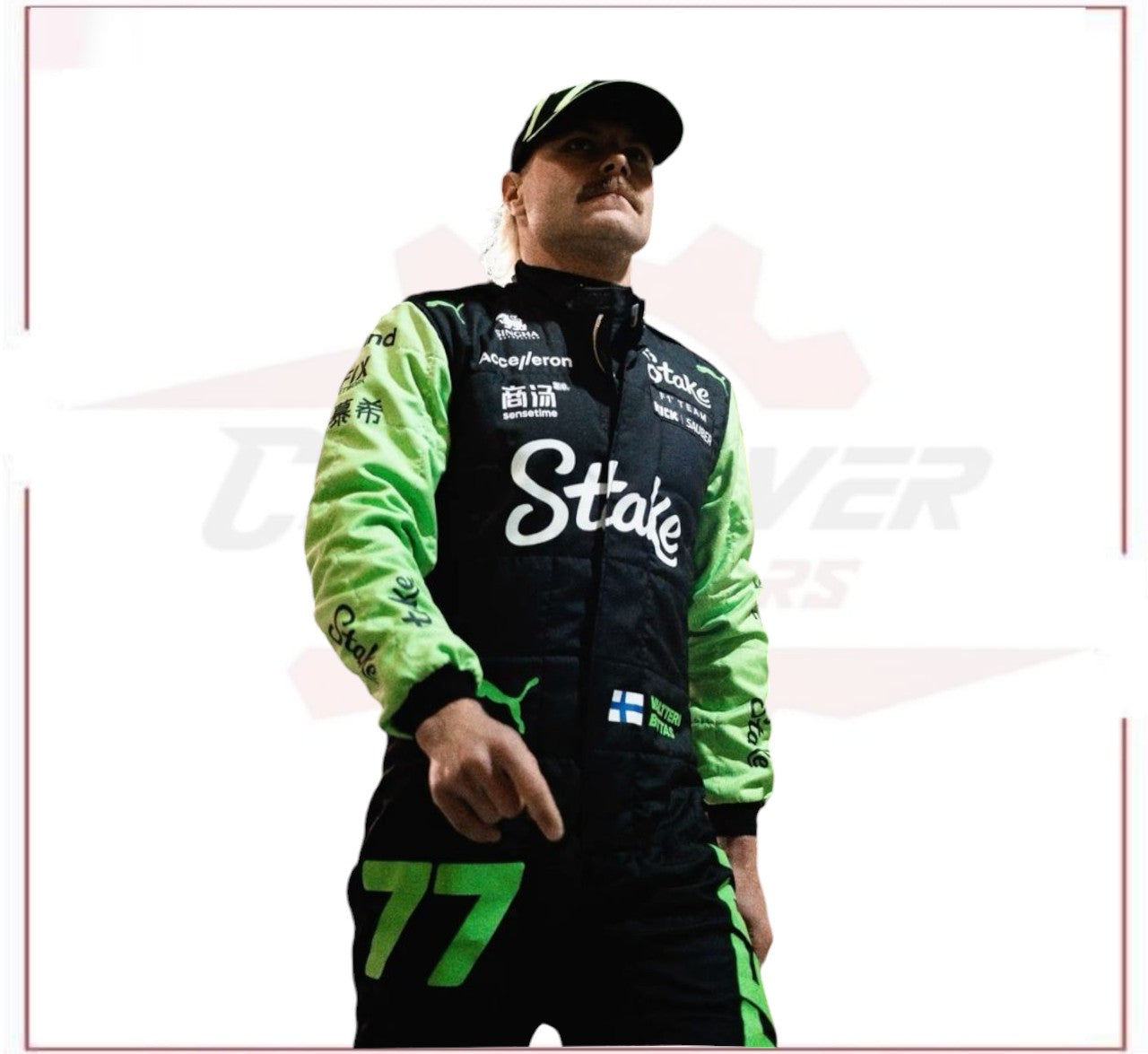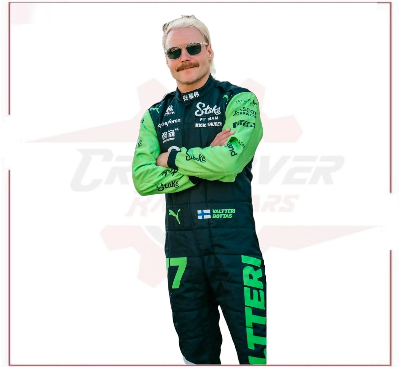 Step up your racing with the official 2024 Valtteri Bottas Kick Sauber F1 Team Stake Race Suit. Crafted from the highest quality, cutting-edge materials, this suit is designed to deliver maximum performance and comfort. The same suit trusted by pro driver Valtteri Bottas, this racewear offers unbeatable durability, lightweight flexibility, and the sleek, modern style that stands out on the track. Gain the ultimate racing edge with the 2024 Valtteri Bottas Kick Sauber F1 Team Stake Race Suit.