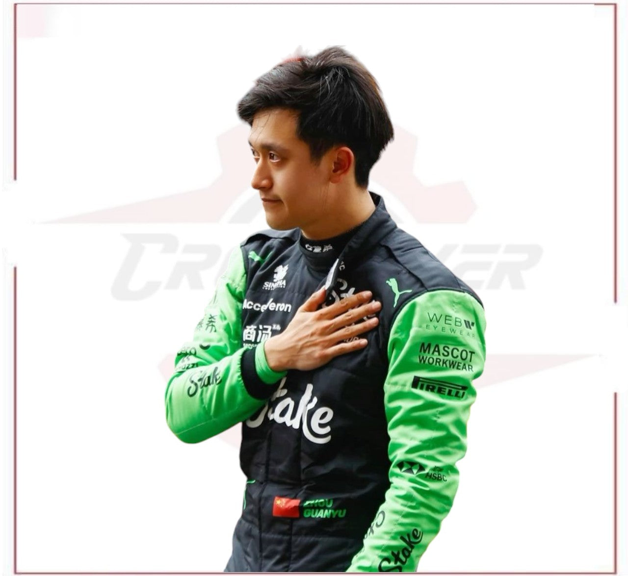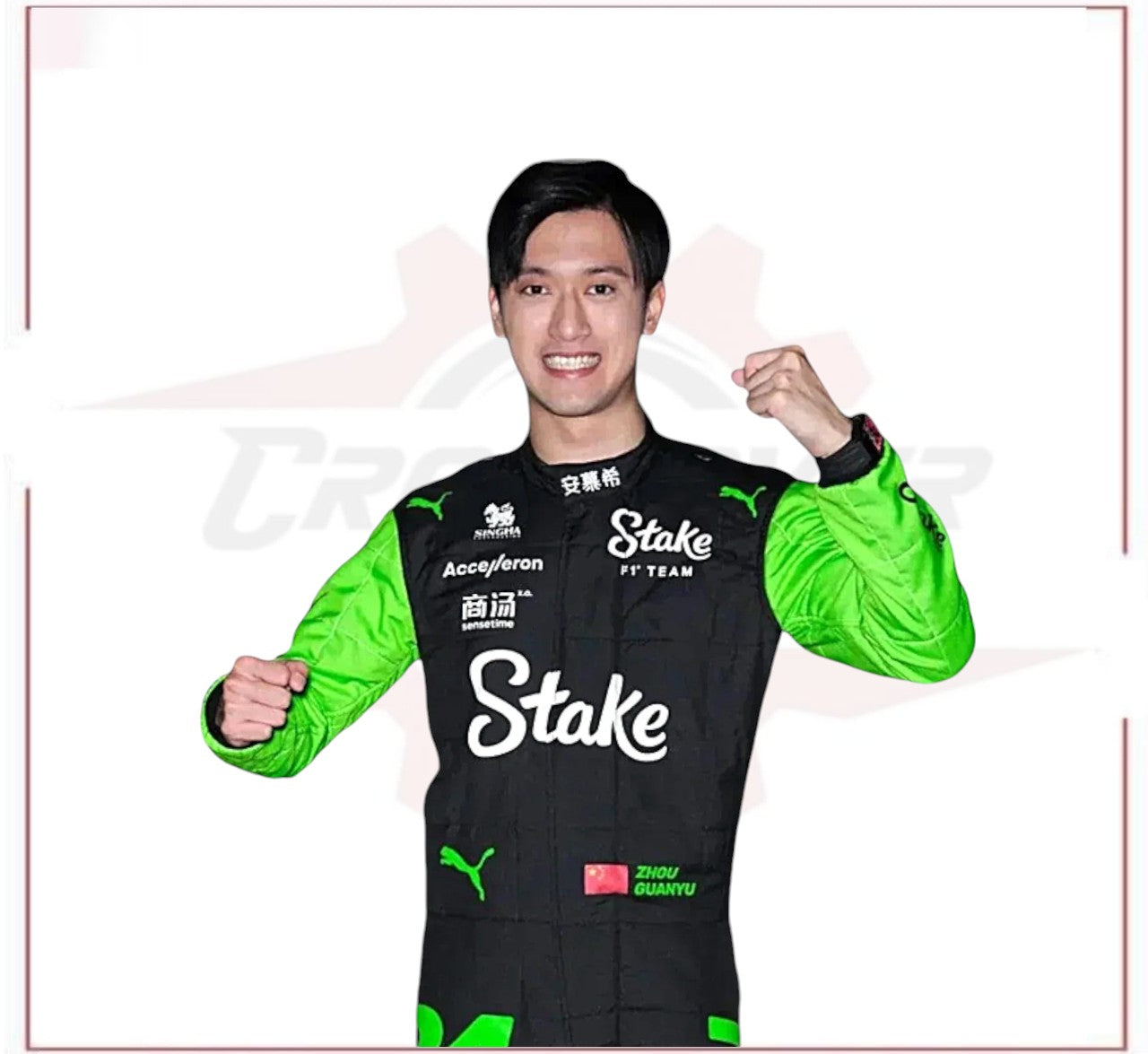 Experience the thrill of F1 with the official 2024 Zhou Guanyu Sauber F1 Team Stake replica race suit. This premium suit is crafted with durable Shine Cordura fabric, ensuring a sleek, authentic appearance, and is lined with soft cotton for comfort during extended wear. Featuring detailed Sauber F1 Team and Stake branding, this suit faithfully replicates Zhou Guanyu's official race-day gear, complete with sponsor logos and team colors. Available in all sizes, the suit includes complimentary personalization, allowing you to add your name and national flag at no additional cost.