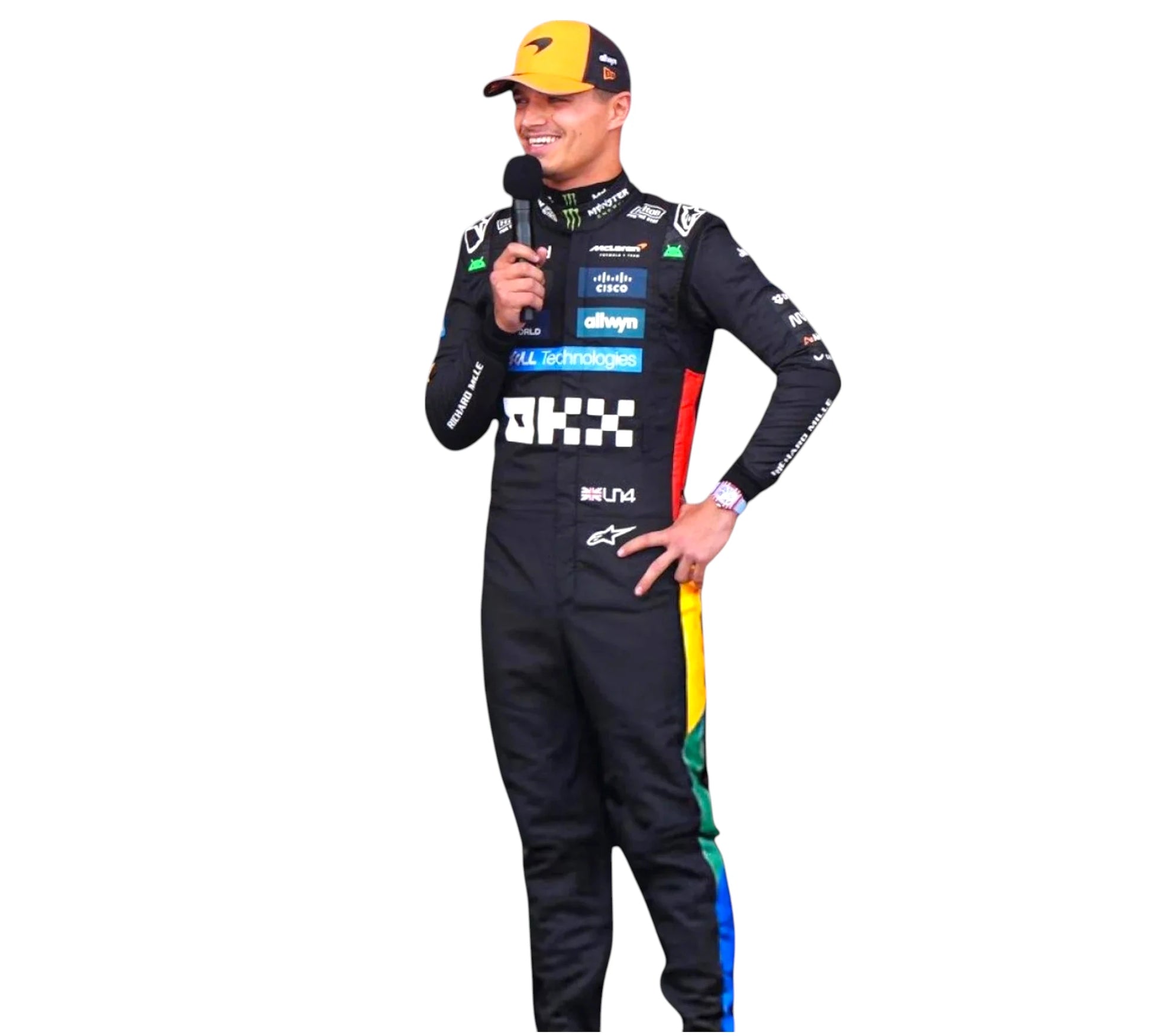 The 2025 Lando Norris McLaren F1 Race Suit for the British GP offers top safety with fire-resistant materials and advanced ventilation. Its ergonomic design ensures comfort and mobility during races. Officially licensed, it features authentic team branding, making it ideal for collectors and fans of Formula 1 heritage. The 2025 Lando Norris McLaren Formula 1 Race Suit, designed specifically for the British Grand Prix, combines cutting-edge technology with premium materials to meet the highest standards of safety and performance.