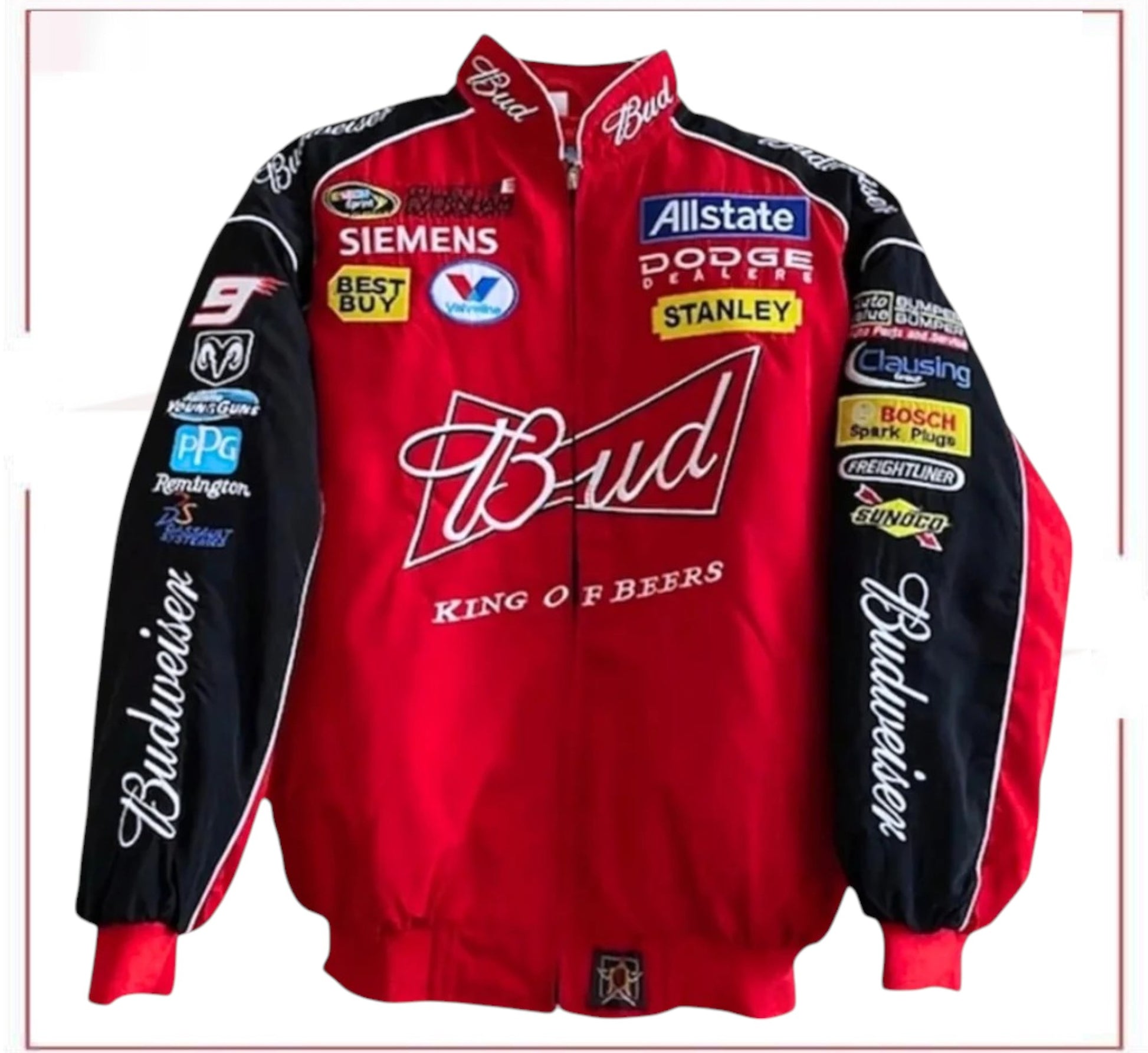 Introducing the Budweiser Black F1 Racing Jacket, a bold and sleek piece that merges the iconic Budweiser branding with the high-speed excitement of Formula 1. Crafted from premium materials, this jacket features striking Budweiser logos against a stylish black backdrop, complemented by racing-inspired details. Perfect for both casual wear and motorsport events, it’s a must-have for fans who appreciate the fusion of legendary branding and the thrill of F1 racing.