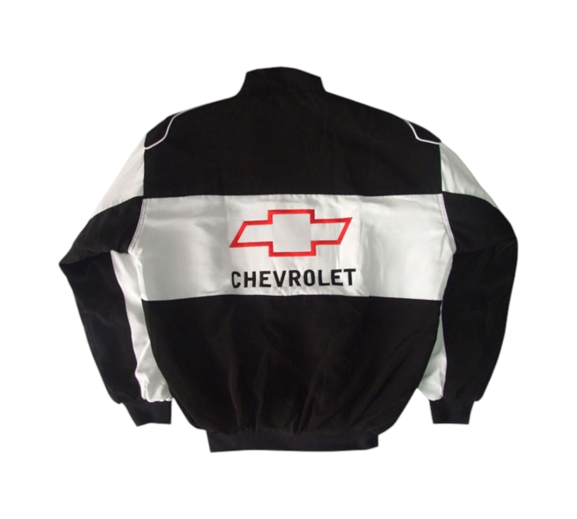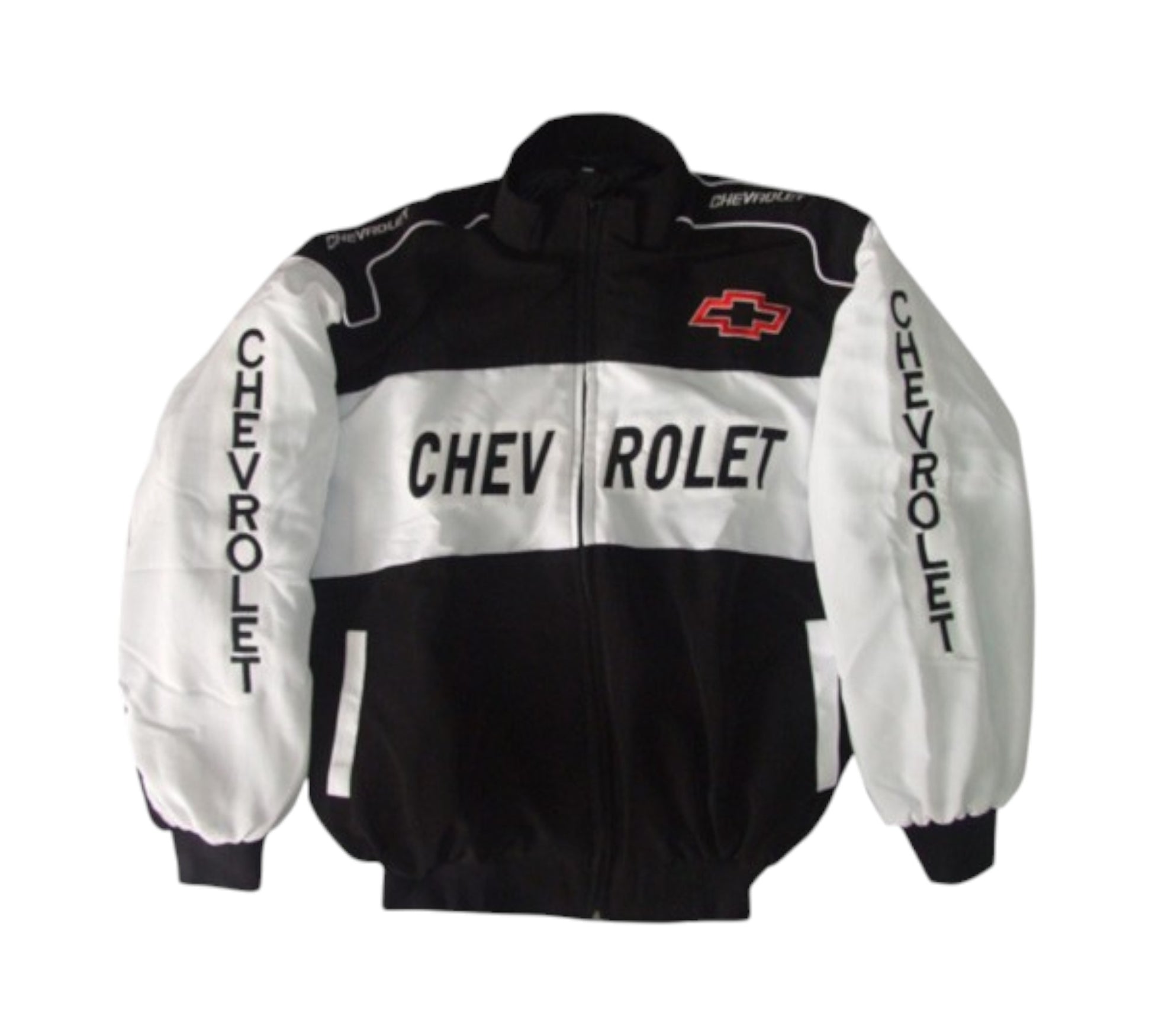 All Chevrolet racing jackets are made of a very soft and durable micro-fiber blend fabric Chevrolet Racing Jackets can be customized by adding Sublimation Printed or changing jacket colors. Have your name , number or logo directly into the jacket. Great Looking Chevrolet Racing vintage Jacket Black & White is designed with the performance and style of the Chevrolet in mind. Made with high-quality materials, this jacket is perfect for any racing enthusiast. With its sleek and modern design, it's the perfect addition to any racing wardrobe. Top quality custom racing apparel, Chevrolet Vintage Racing Jackets.