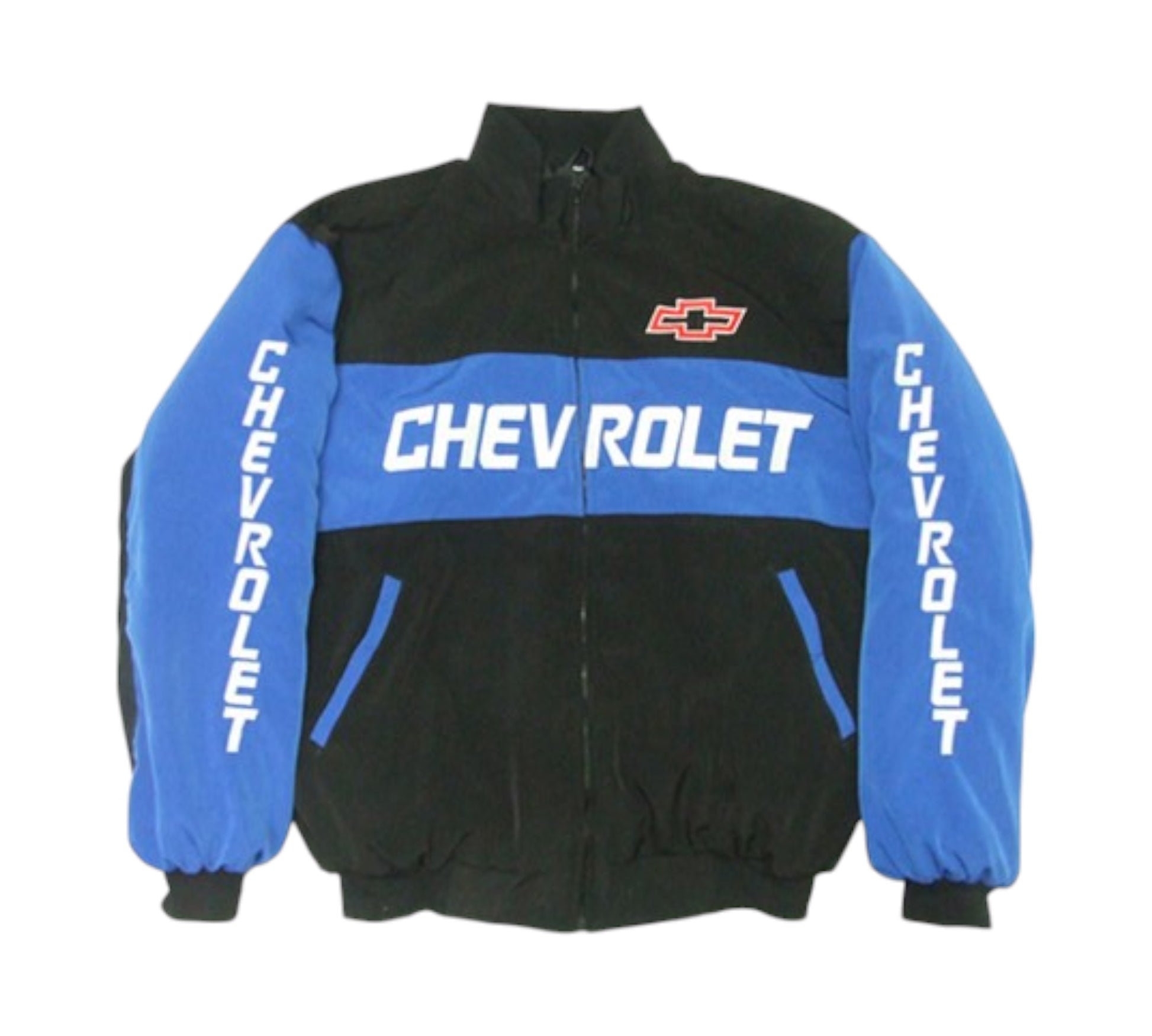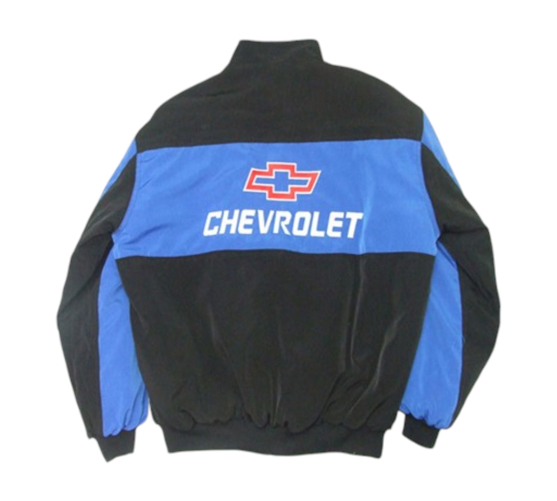 All Chevrolet racing jacket are made of a very soft and durable micro-fiber blend fabric Chevrolet Racing Jackets can be customized by adding Sublimation Printed or changing jacket colors. Have your name , number or logo directly into the jacket. Great Looking Chevrolet Jacket Black & Light Blue is designed with the performance and style of the Chevrolet in mind. Made with high-quality materials, this jacket is perfect for any racing enthusiast. With its sleek and modern design, it's the perfect addition to any racing wardrobe. Top quality custom racing apparel, Chevrolet Vintage Racing Jackets.