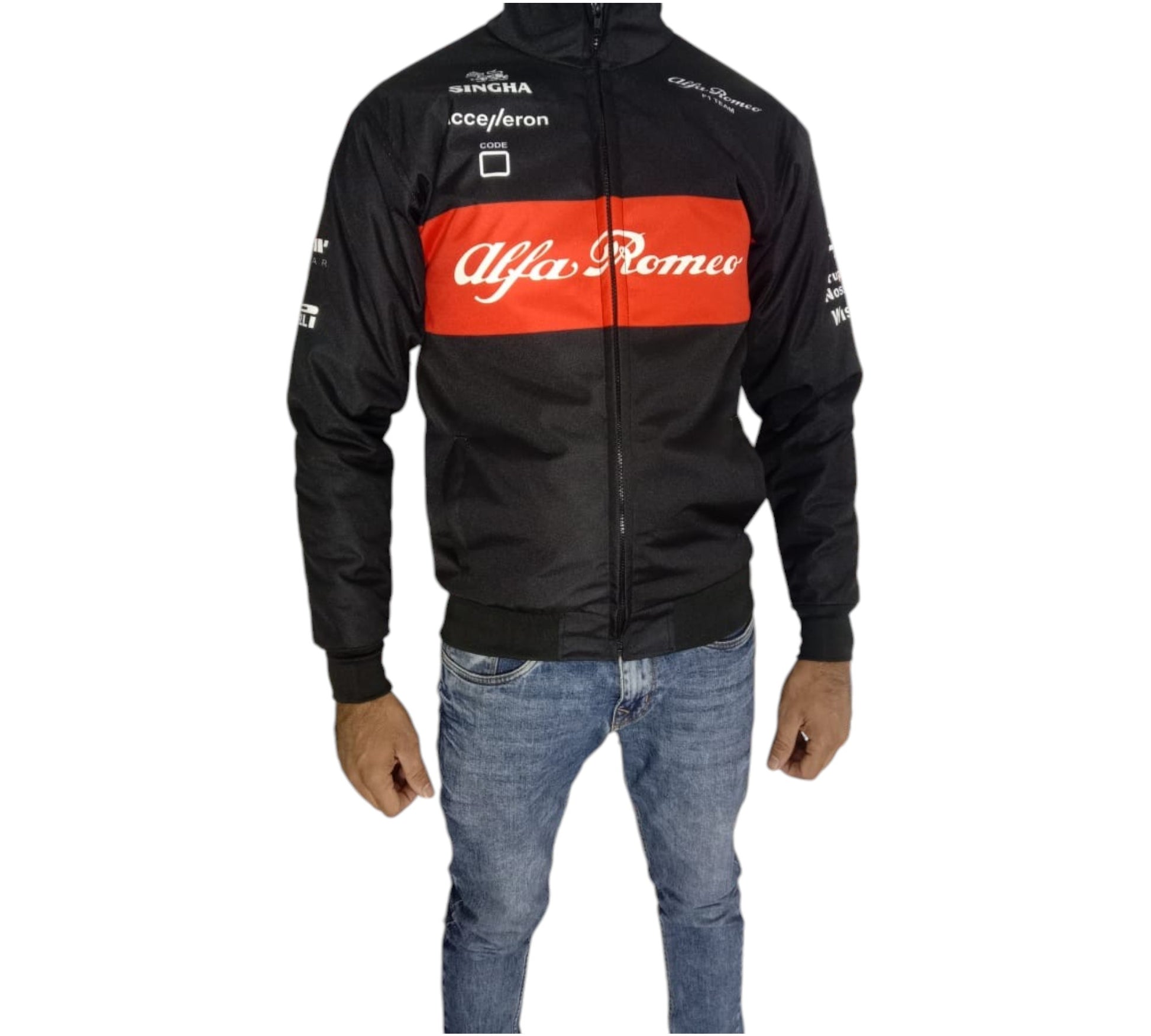 New F1 Racing Vintage Alfa Romeo Jacket, Introducing the Alfa Romeo F1 Vintage Jacket, inspired by the legendary racing team's iconic design. Made with high-quality materials, this jacket combines style and functionality. 100% polyester and featuring the classic Alfa Romeo logo, this jacket is a must-have for any racing fan. Upgrade your wardrobe with this exclusive piece of racing history.