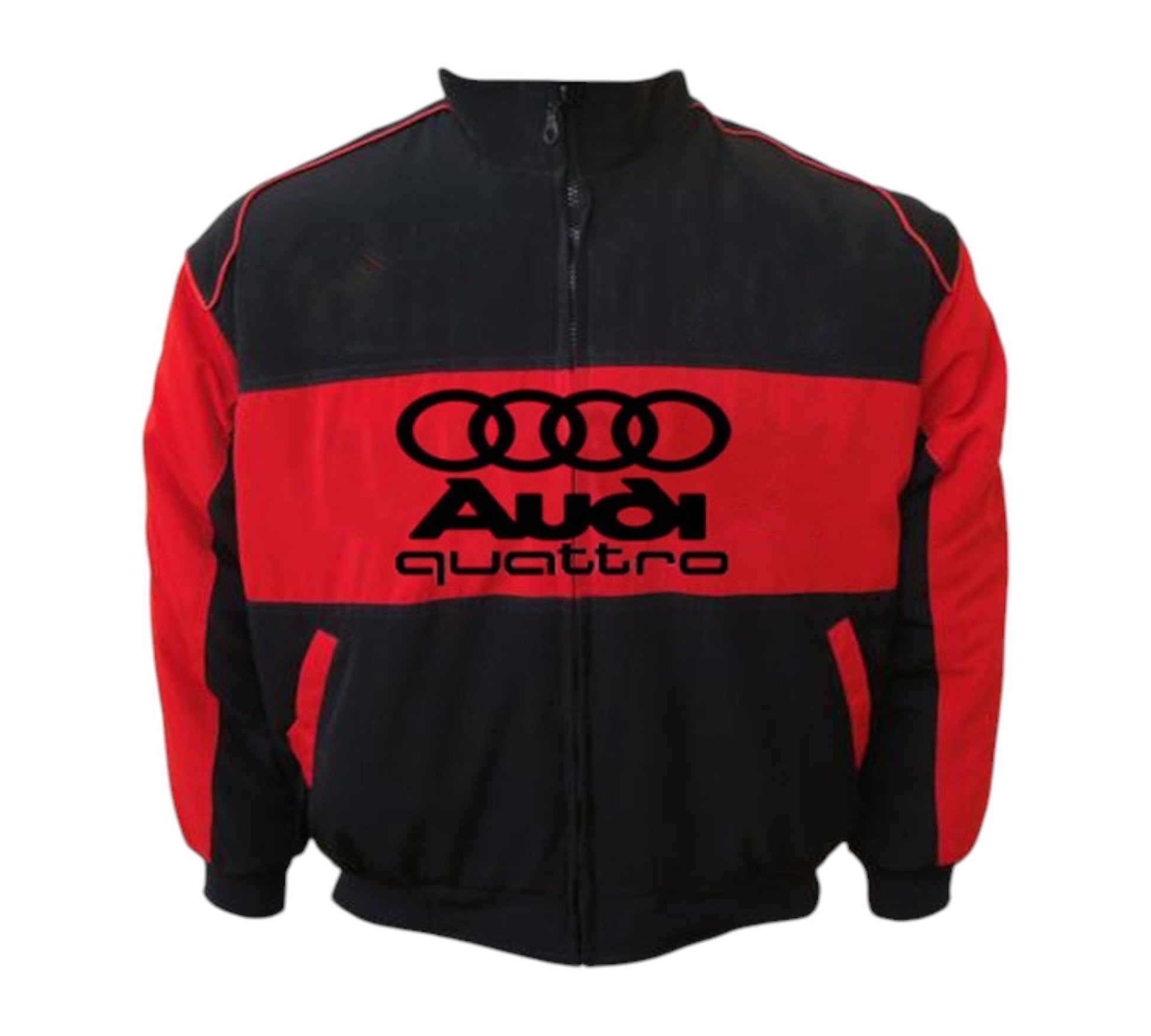 Have your name , number or logo directly into the jacket. Audi Racing Jacket Red and Black is designed with the performance and style of the Audi in mind. Made with high-quality materials, this jacket is perfect for any racing enthusiast. With its sleek and modern design, it's the perfect addition to any racing wardrobe. Top quality custom racing apparel, Audi racing jackets.