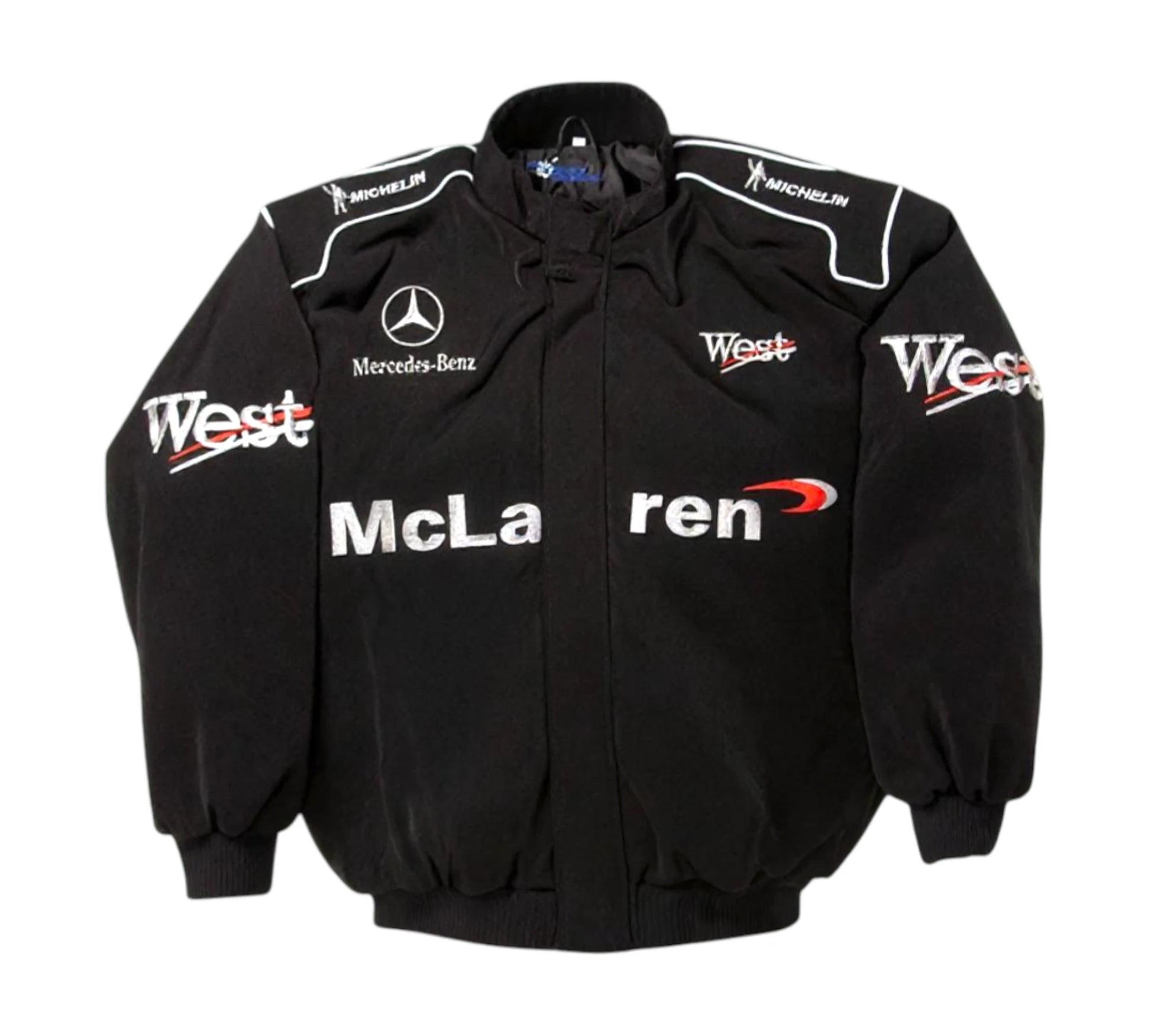 The Mercedes Benz West F1 Racing Vintage Jacket showcases a meticulously crafted sublimation print that authentically represents the iconic racing legacy. Designed with expert attention to detail, this jacket combines vintage style with modern durability, making it an essential piece for enthusiasts who appreciate both heritage and quality. Its premium materials ensure comfort and longevity, while the striking design pays homage to a celebrated era in motorsport history. Perfect for collectors and fans alike, this jacket offers a sophisticated way to display your passion for Formula 1 racing.