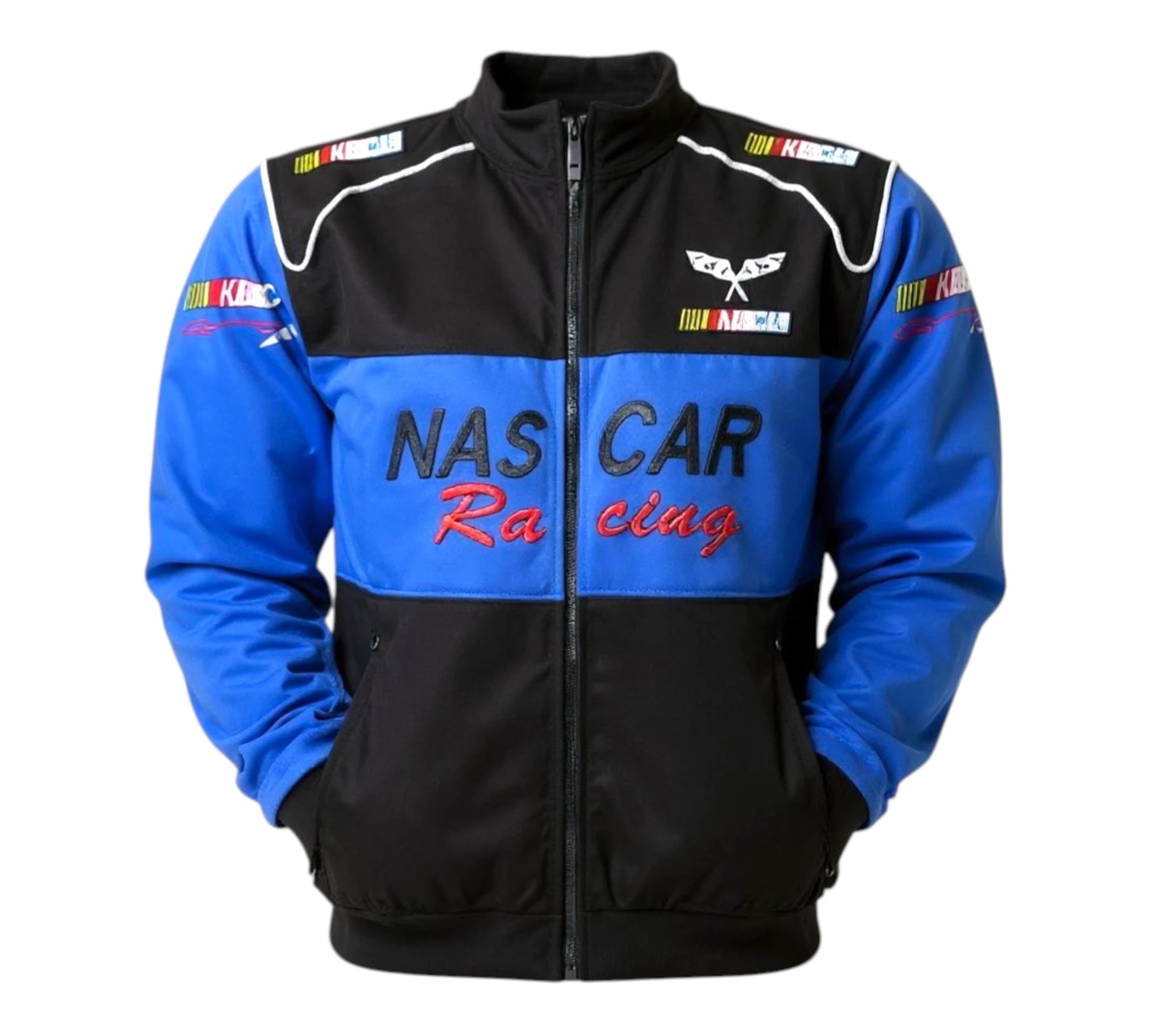 This blue and black Nascar Racing Jacket features sublimation printing, blending style with practicality. Crafted from sturdy materials, it’s perfect for extended track days or everyday wear. The striking colors and classic Nascar logo create a standout look, while its durable build guarantees long-lasting use. Display your passion for racing with this essential jacket.