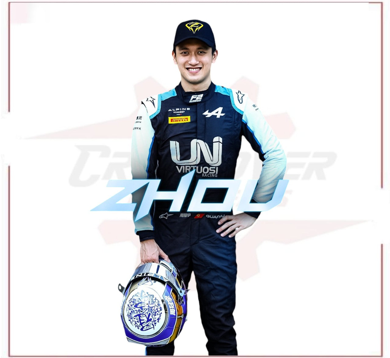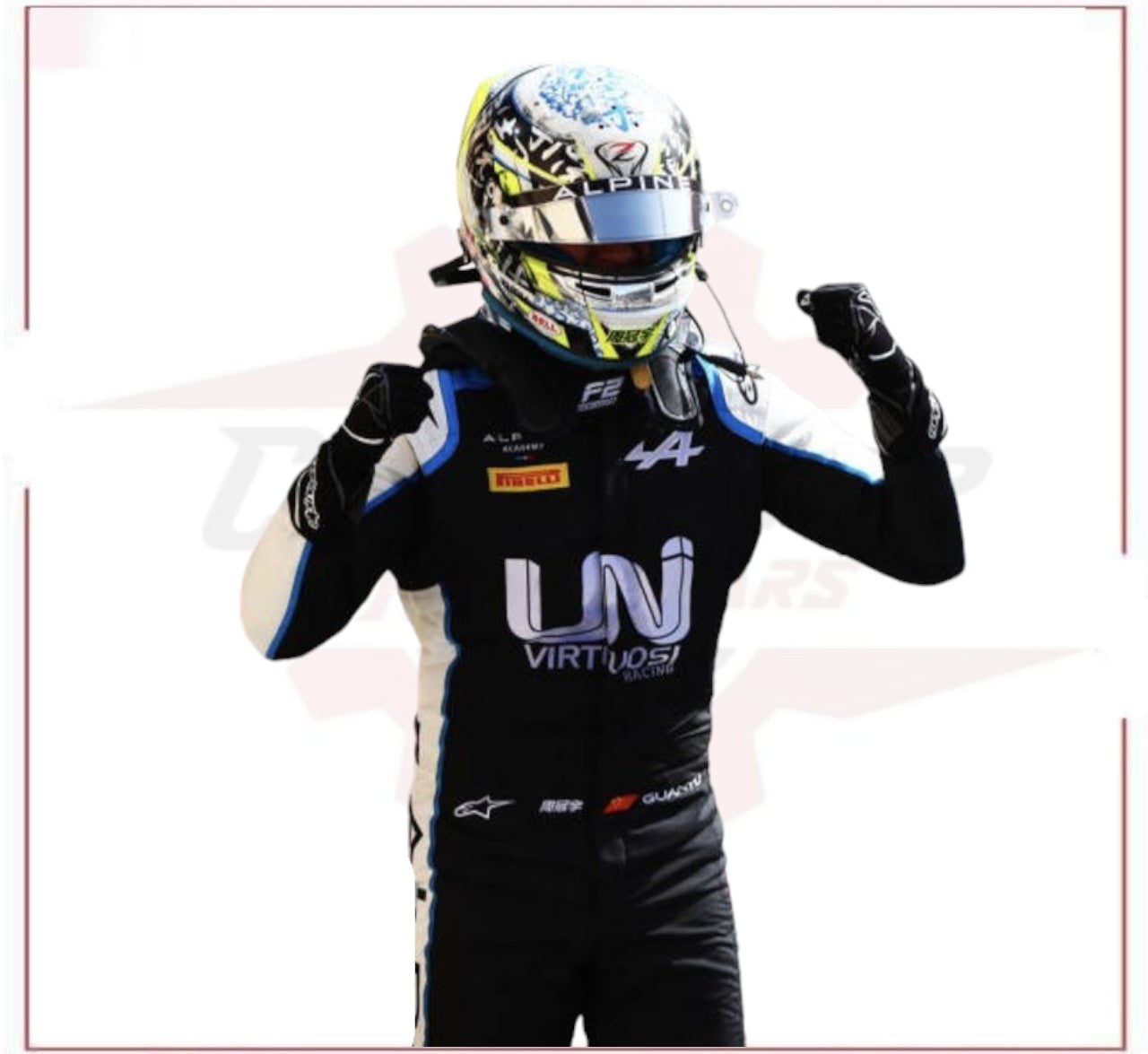 Made from high-quality, New 2021 Zhou Guanyu Formula 2 Race Suit this suit combines superior protection with lightweight flexibility, perfect for the dynamic needs of kart racing. It features the colors and branding of Zhou’s 2021 season, showcasing UNI-Virtuosi’s sponsor logos and design elements. The suit’s ergonomic construction ensures both comfort and performance, making it ideal for maneuvering through tight corners and achieving top speeds on the track.