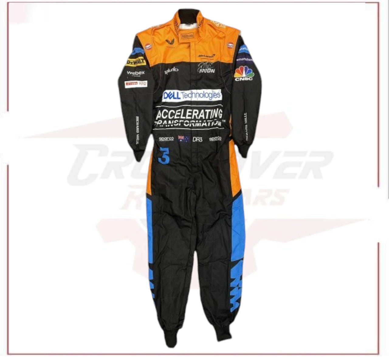New 2022 Daniel Ricciardo McLaren F1 Race Suit is crafted for maximum performance during high-speed races. Made from lightweight material for optimal comfort, it boasts superior aerodynamics and durability. With its sleek design and advanced technology, this race suit is a must-have for professional racers.