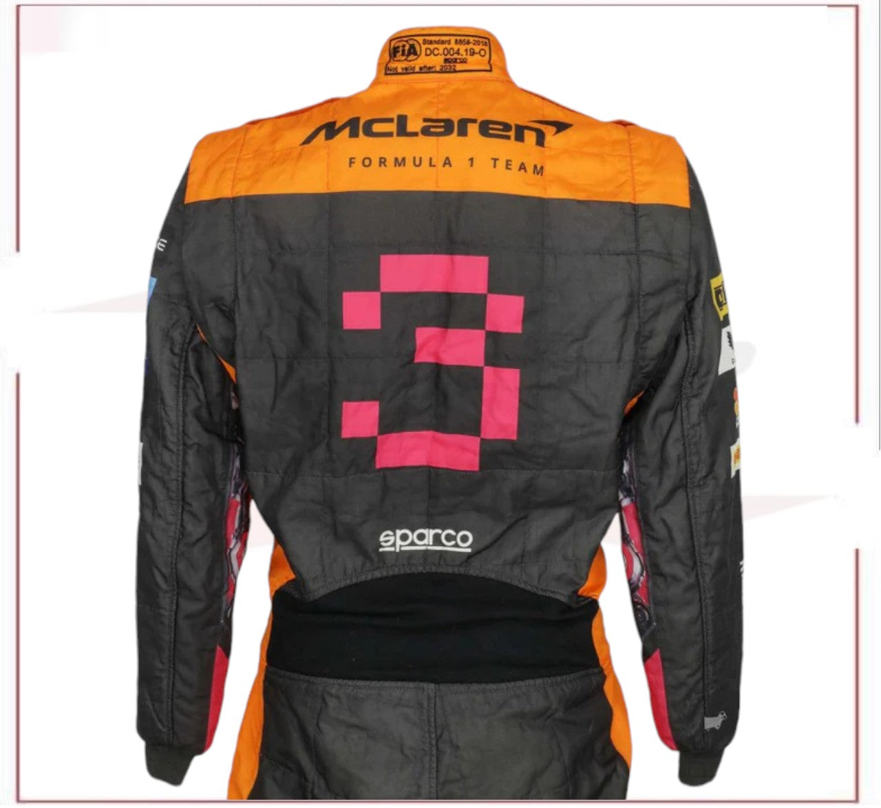 Daniel Ricciardo Mclaren F1 Race Suit. Special design Sparco suit worn by Daniel Ricciardo at Bahrain while driving for the McLaren F1 Team during the Singapore and Japanese GP.