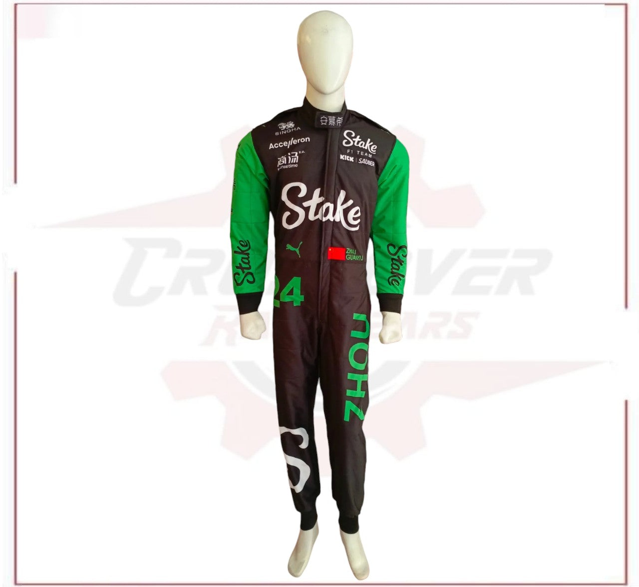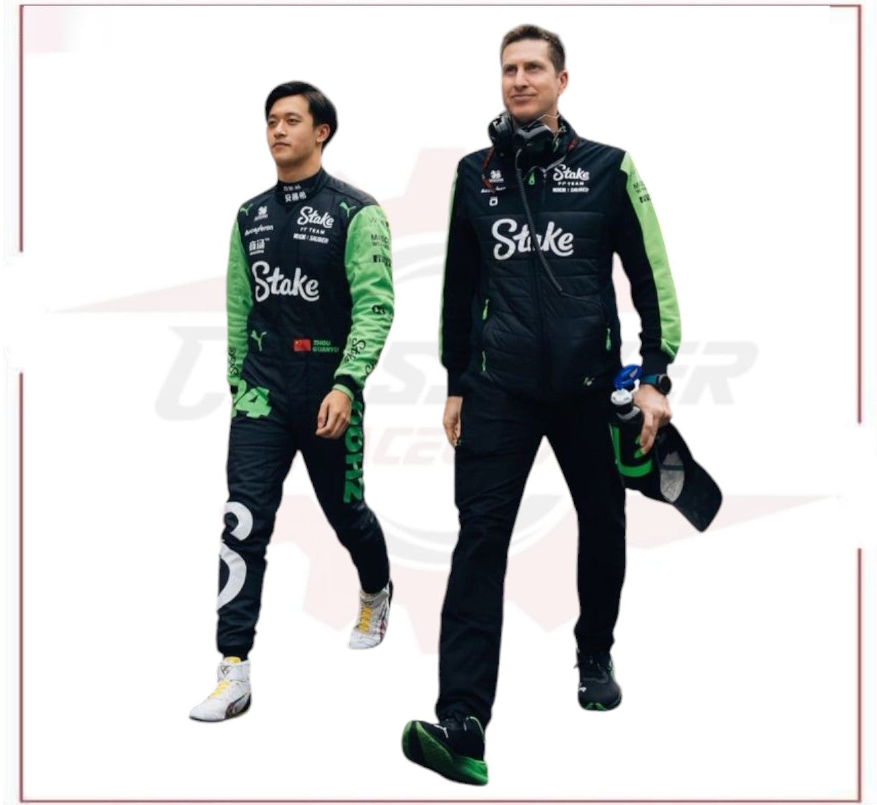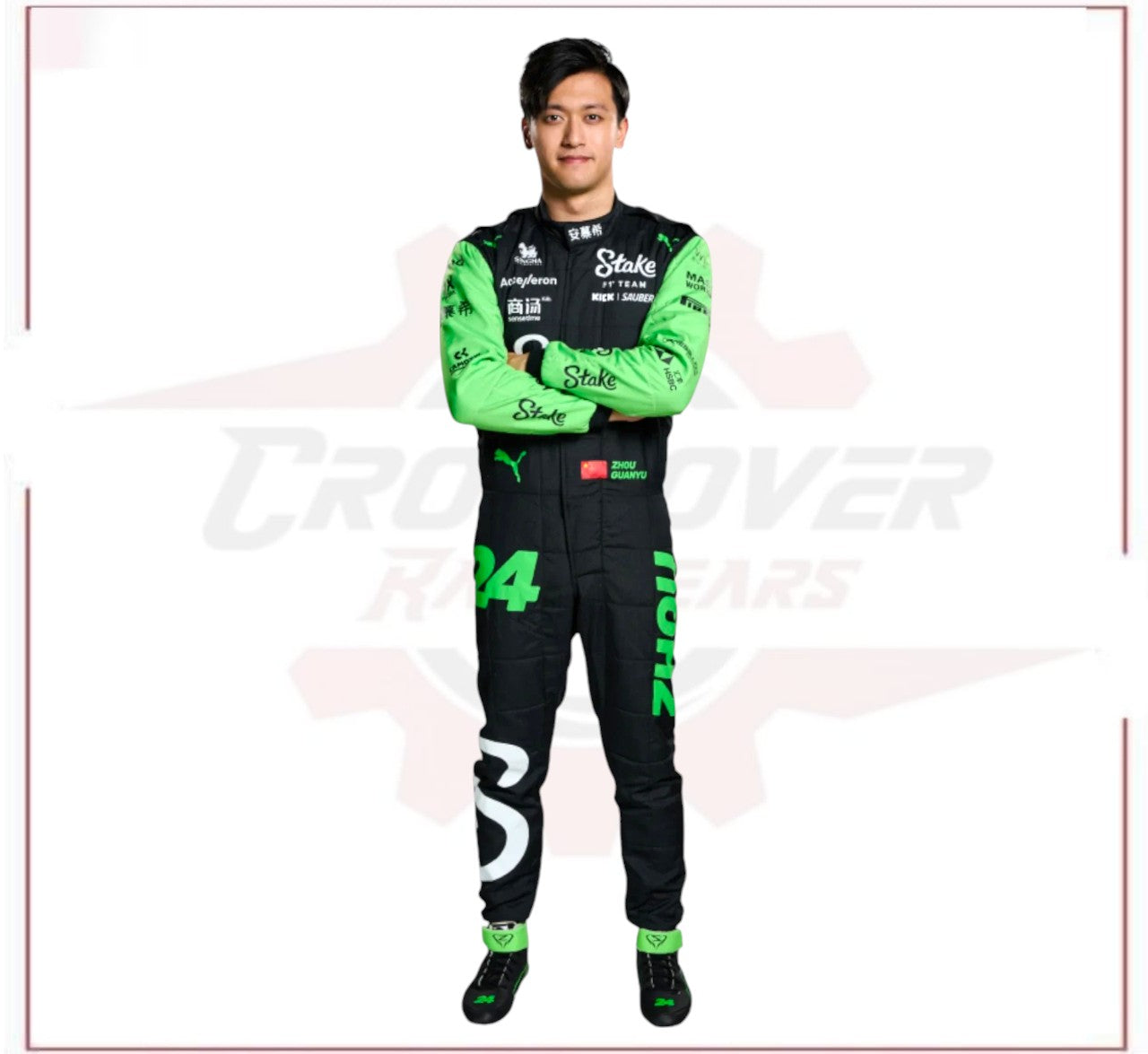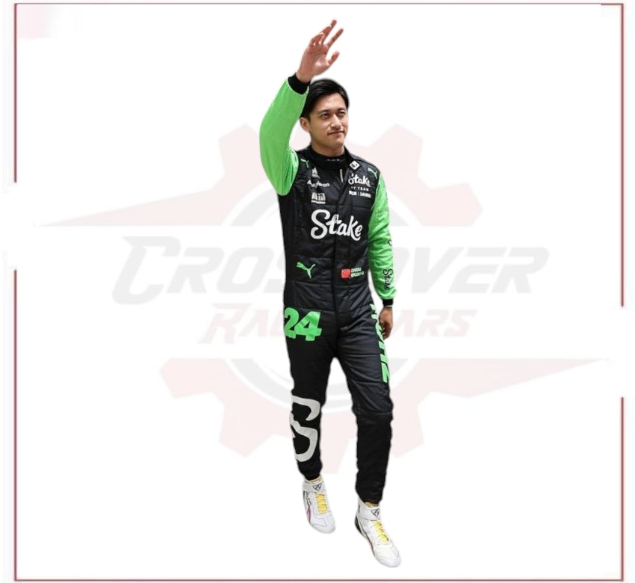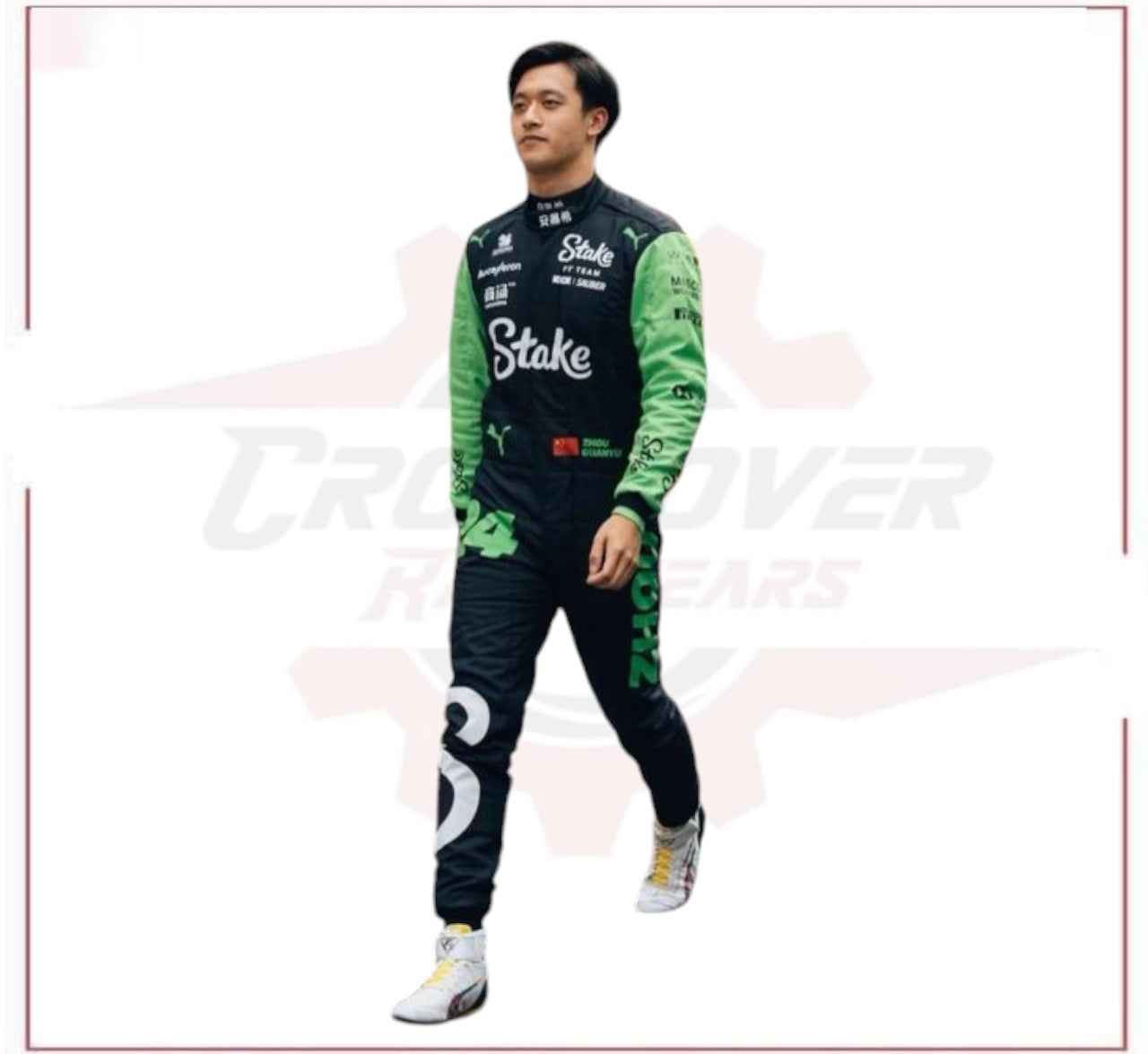 The 2024 Zhou Guanyu Kick Sauber F1 Team Stake Race Suit, It looks like you’re interested in a new 2024 Zhou Guanyu replica racing suit from the Stake F1 team, associated with the Sauber Group in Formula 1. Replica racing suits like these often emulate the design and branding of the actual racing suits worn by drivers in Formula 1, down to sponsor logos, colors, and style. Here’s a quick overview of what such a suit typically includes and where you might look for an item like this,