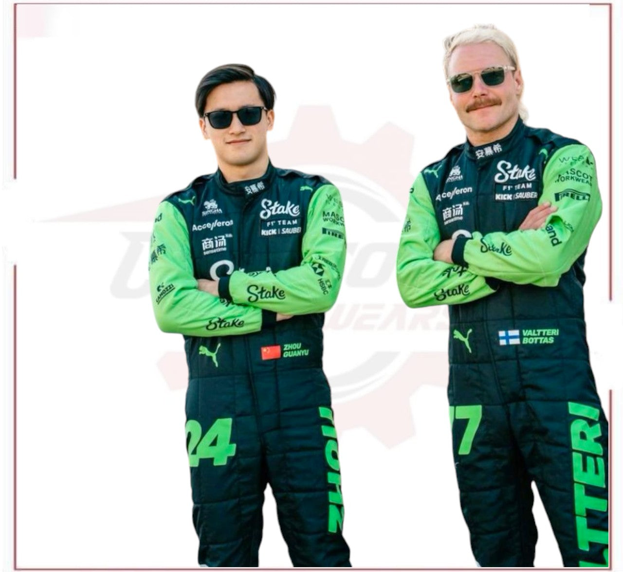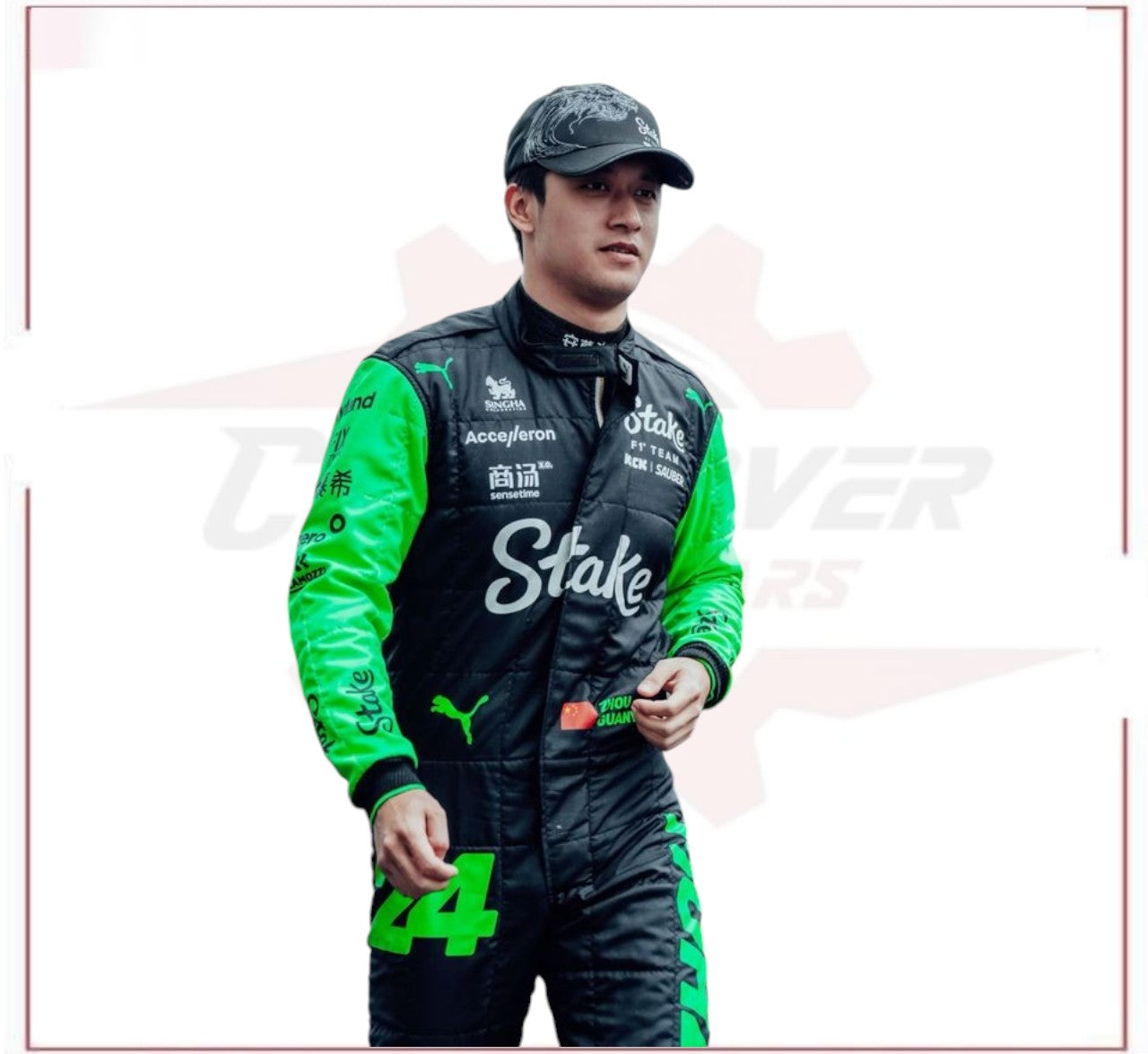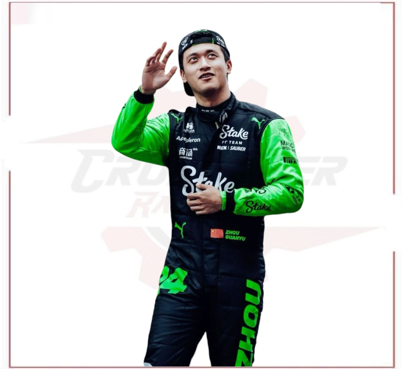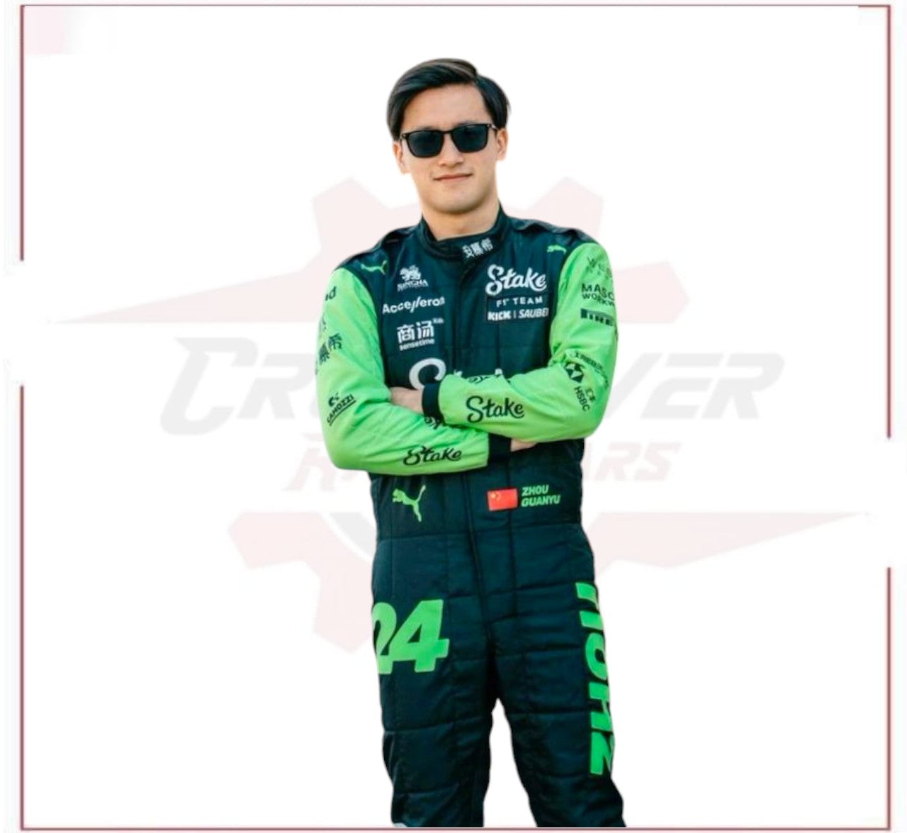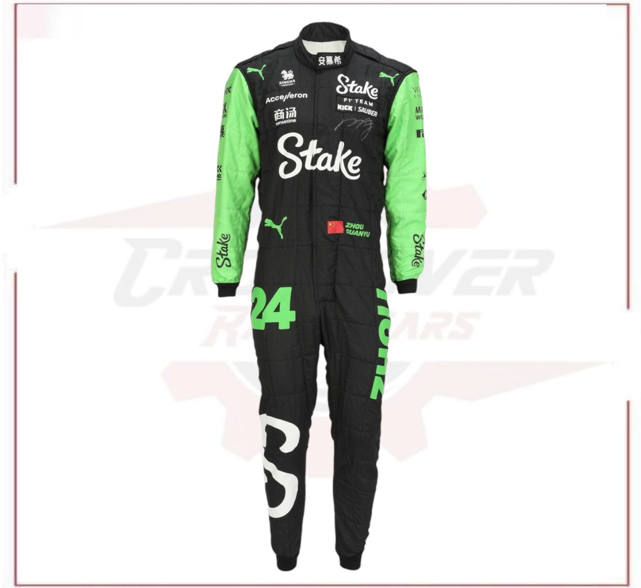 The 2024 Zhou Guanyu Kick Sauber F1 Team Stake Race Suit, It looks like you’re interested in a new 2024 Zhou Guanyu replica racing suit from the Stake F1 team, associated with the Sauber Group in Formula 1. Replica racing suits like these often emulate the design and branding of the actual racing suits worn by drivers in Formula 1, down to sponsor logos, colors, and style. Here’s a quick overview of what such a suit typically includes and where you might look for an item like this,
