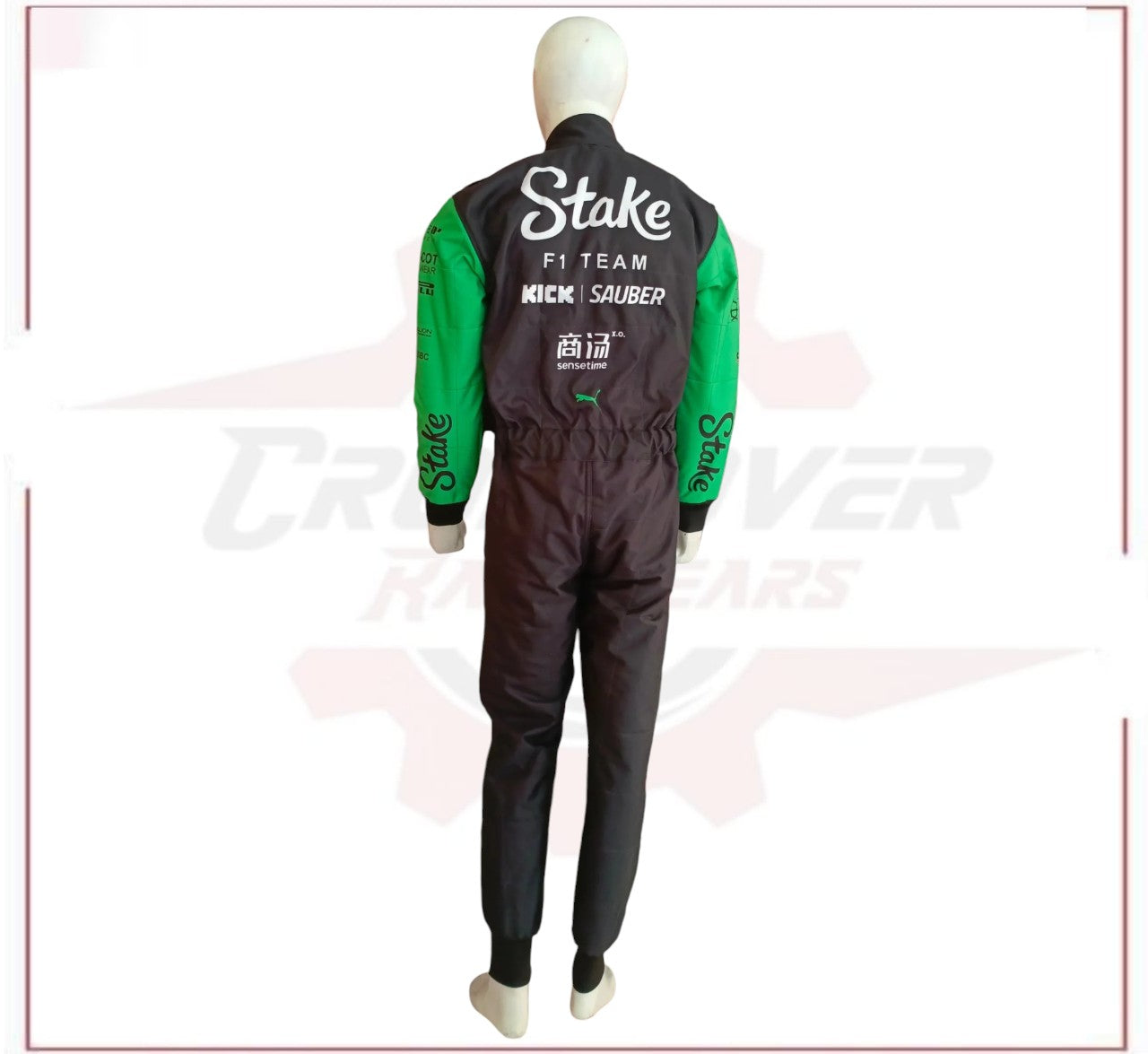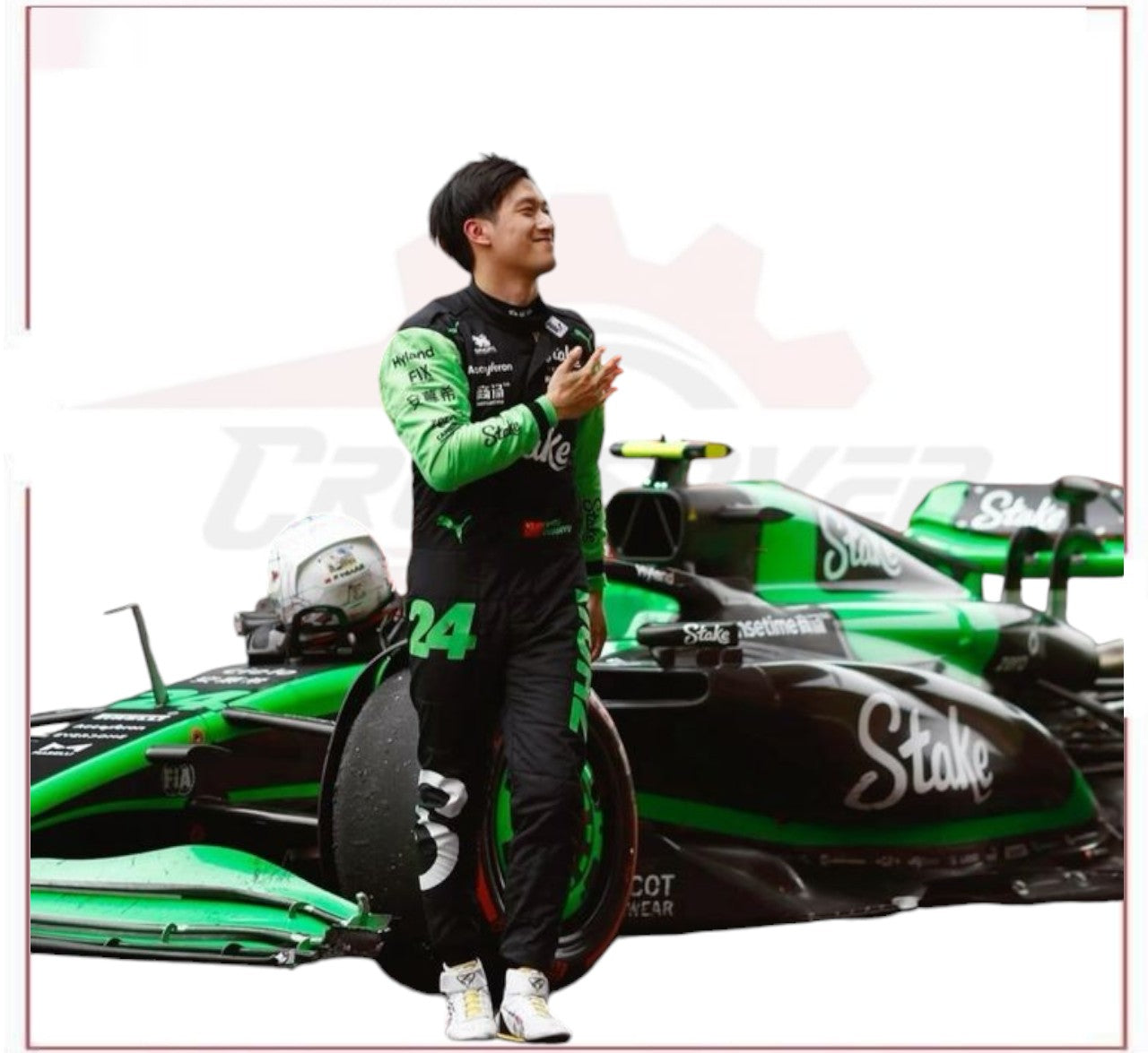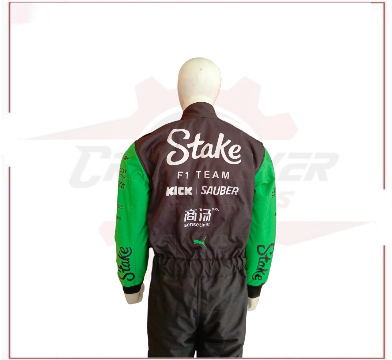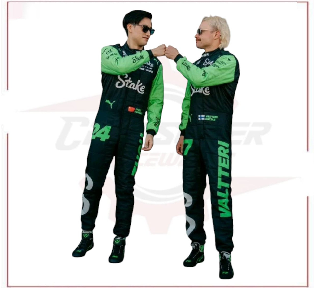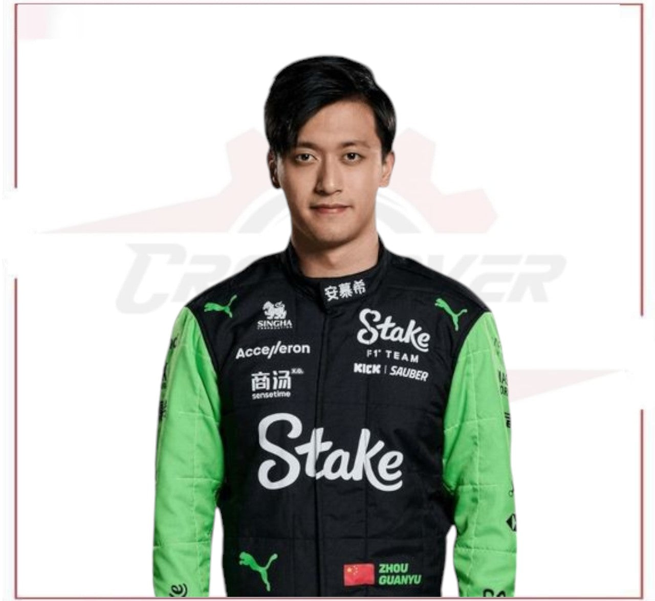 The 2024 Zhou Guanyu Kick Sauber F1 Team Stake Race Suit, It looks like you’re interested in a new 2024 Zhou Guanyu replica racing suit from the Stake F1 team, associated with the Sauber Group in Formula 1. Replica racing suits like these often emulate the design and branding of the actual racing suits worn by drivers in Formula 1, down to sponsor logos, colors, and style. Here’s a quick overview of what such a suit typically includes and where you might look for an item like this,
