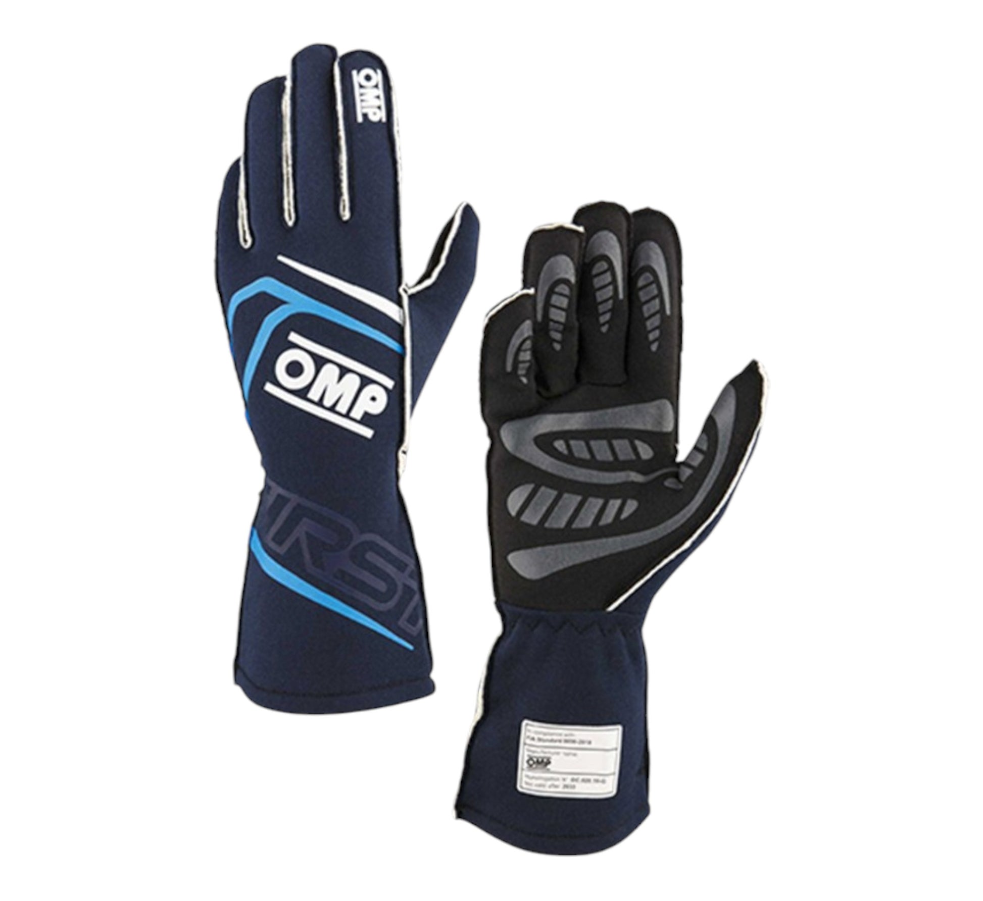 OMP First Race Gloves Lightweight and resistant race & rally glove with elastic band on the wrist, straight cut design. Silicon palm for best grip and sensitivity. External seams.