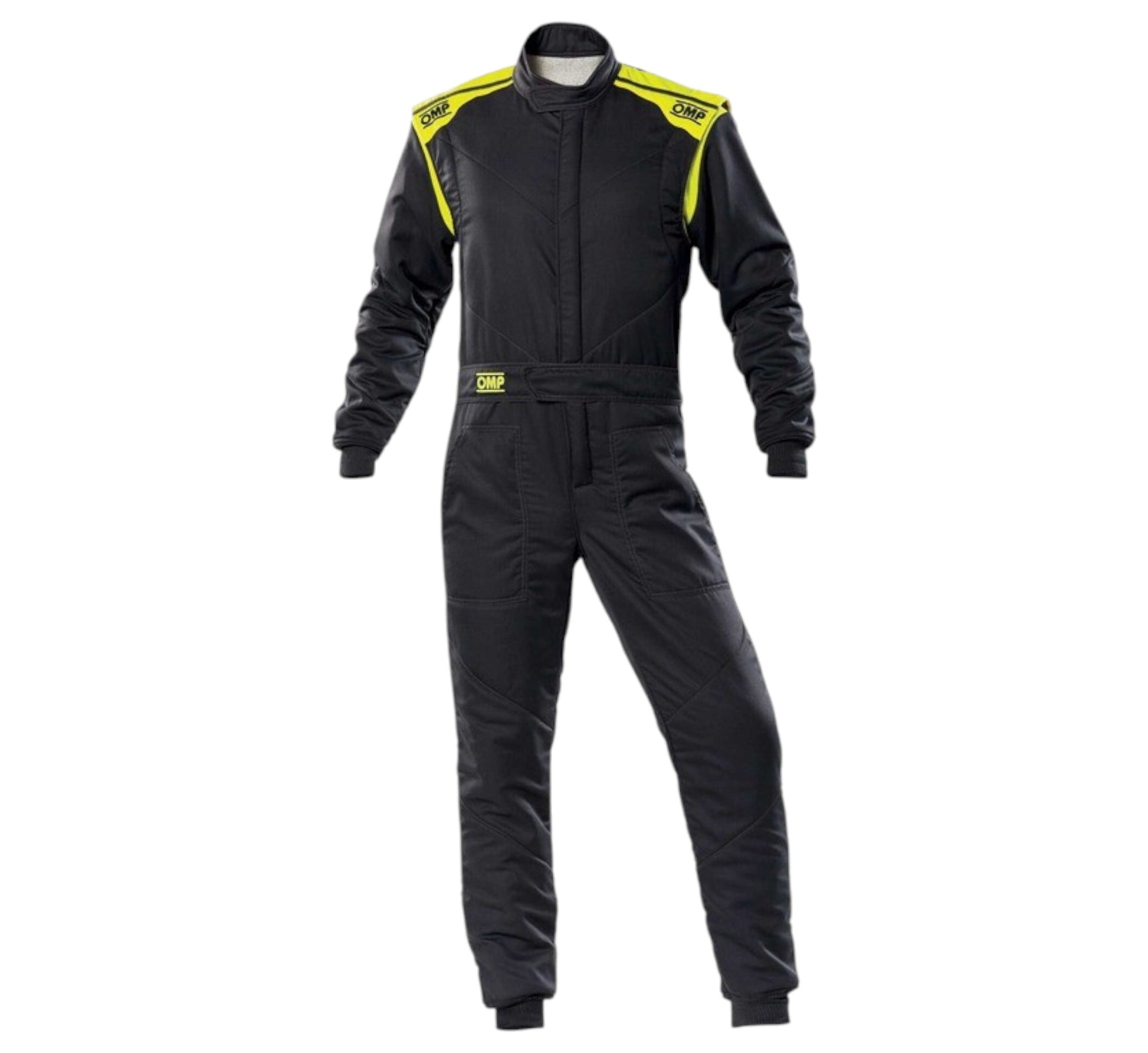 OMP First-S Race Suits. Our suit is complying with the CIK FIA homologation standards, style, comfort and performance are stitched into this nifty kart racing suit that is prepared using nylon fabric and incorporates terry cotton lining that wicks away moisture. Sleek zippers, emblems and fine details deliver an air of attitude as one flaunts through the crowd of spectators.