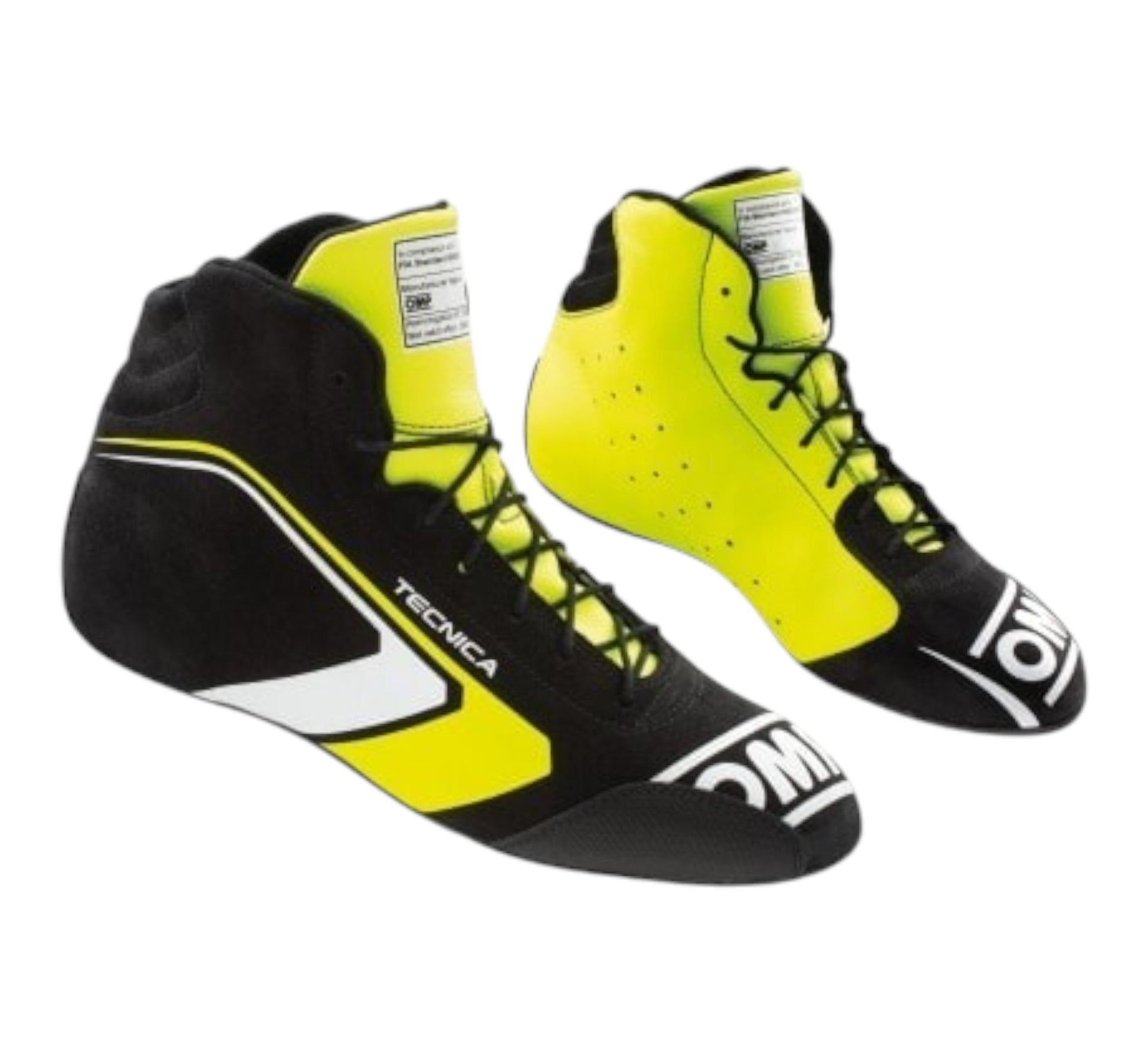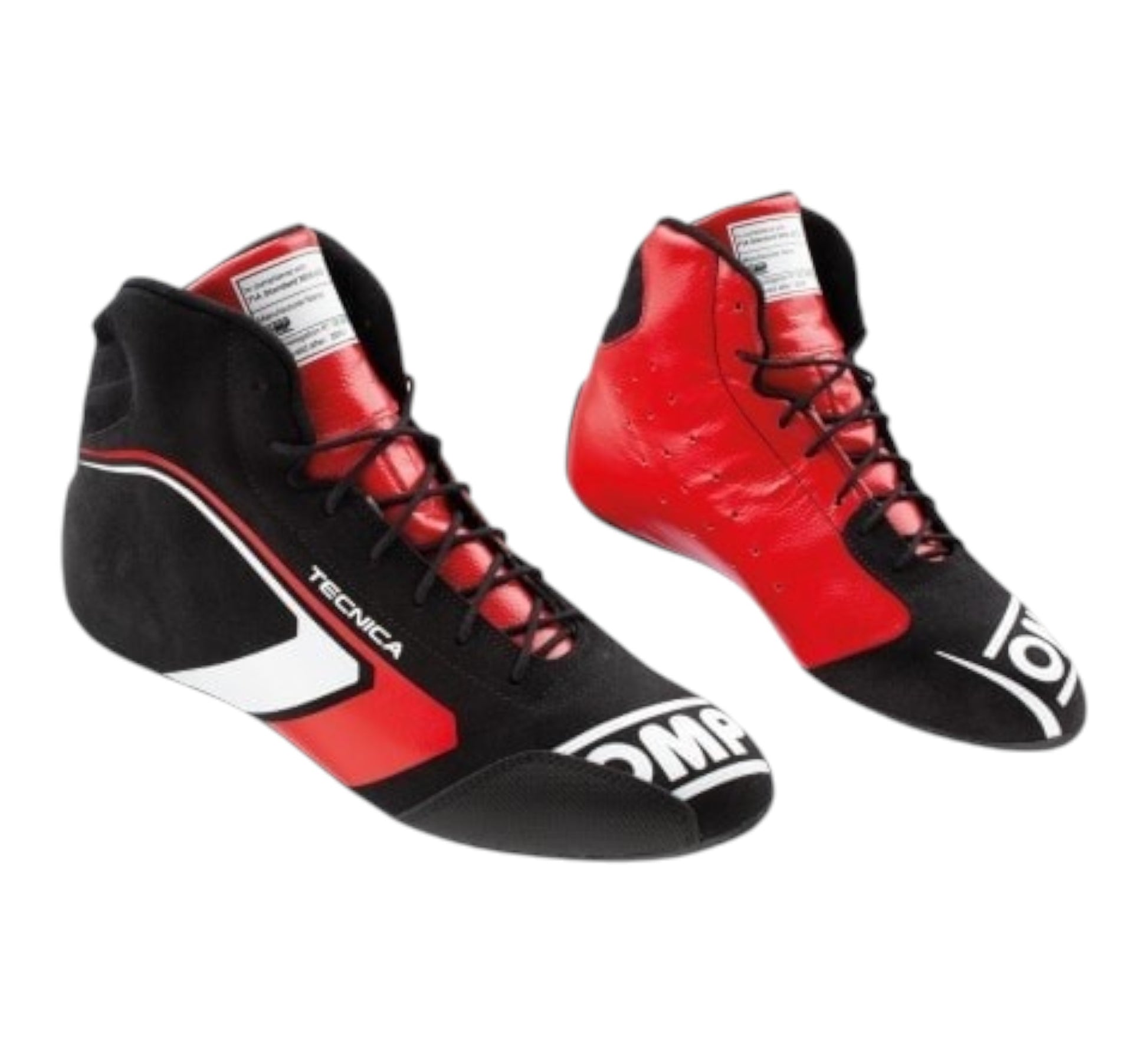 OMP Tecnica Race Shoes. Entry level race boots made in soft, comfortable and lightweight microfiber. Adjustable ankle closure with velcro strap for best comfort. Exclusive resistant antslip rubber sole inspired by car's tyres (high grip in every condition and long-time resistance)