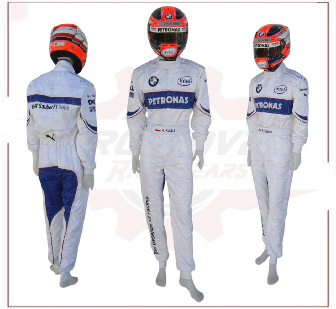 Replica racing suit made of karting fabric comfortable and resistant make in lighweight external fabrics and soft kitted inner lining. Breathable mesh inserts on legs and under the sleeves to get best ventilation and elastic insert on the back to improve fitting and comfort and