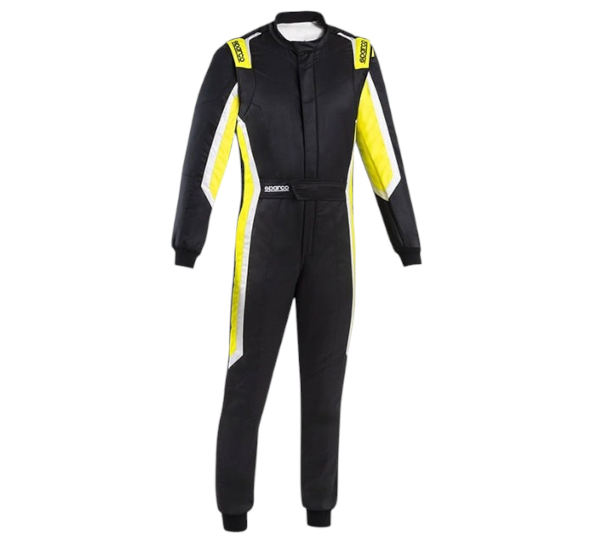 Sparco Sprint Pro Racing Suits. Our suit is complying with the CIK FIA homologation standards, style, comfort and performance are stitched into this nifty kart racing suit that is prepared using nylon fabric and incorporates terry cotton lining that wicks away moisture. Sleek zippers, emblems and fine details deliver an air of attitude as one flaunts through the crowd of spectators. Sparco Go Karting Racing Suits.