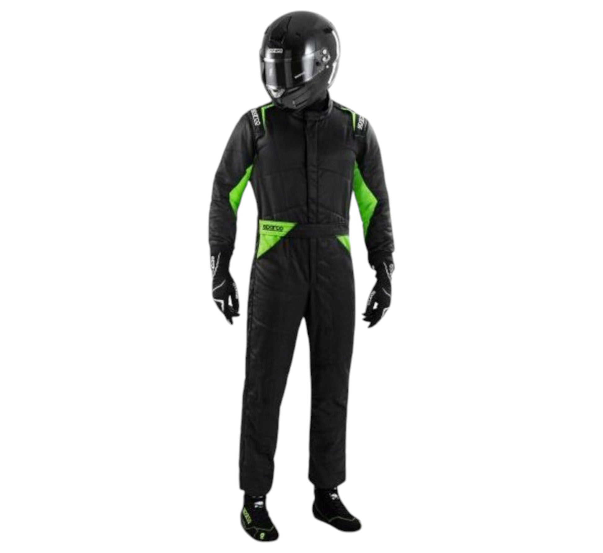 Sparco Sprint Race Suits. Our suit is complying with the CIK FIA homologation standards, style, comfort and performance are stitched into this nifty kart racing suit that is prepared using nylon fabric and incorporates terry cotton lining that wicks away moisture. Sleek zippers, emblems and fine details deliver an air of attitude as one flaunts through the crowd of spectators. Sparco Go Kart Racing Suits.