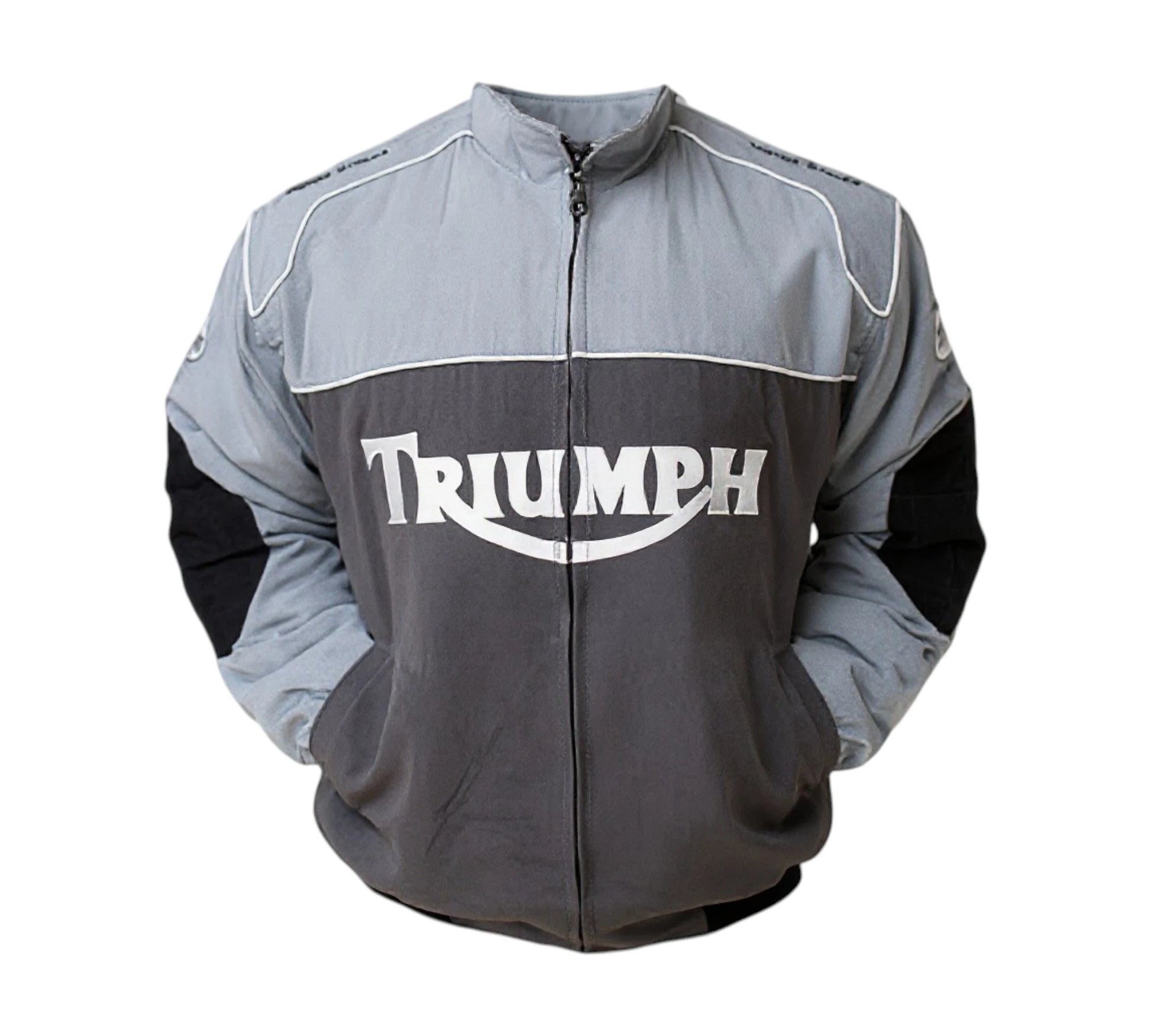 Stay safe and stylish on every ride with the Triumph Motorcycle Racing Jacket in Gray, featuring advanced sublimation printing for durability and vivid design retention. Crafted by industry experts, this jacket combines scientific design principles with high-quality materials to provide exceptional protection against impact and abrasion. The sleek gray color not only offers a modern, sophisticated look but also enhances visibility on the road. Engineered for comfort, it includes ventilation features and a tailored fit, making it ideal for extended rides and high-performance racing. Elevate your motorcycle experience with reliable safety and cutting-edge style.