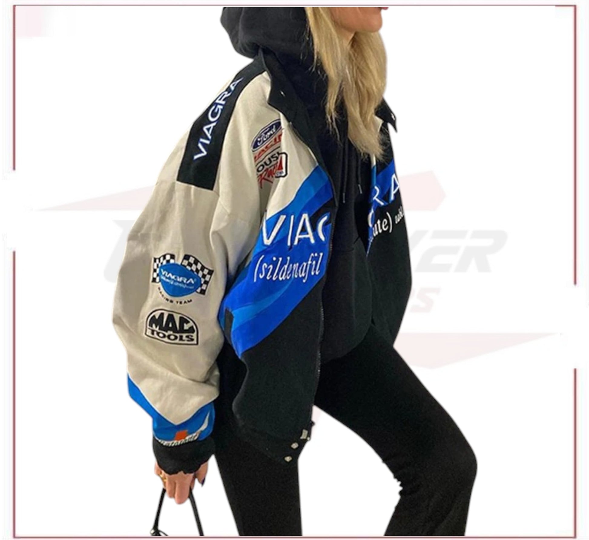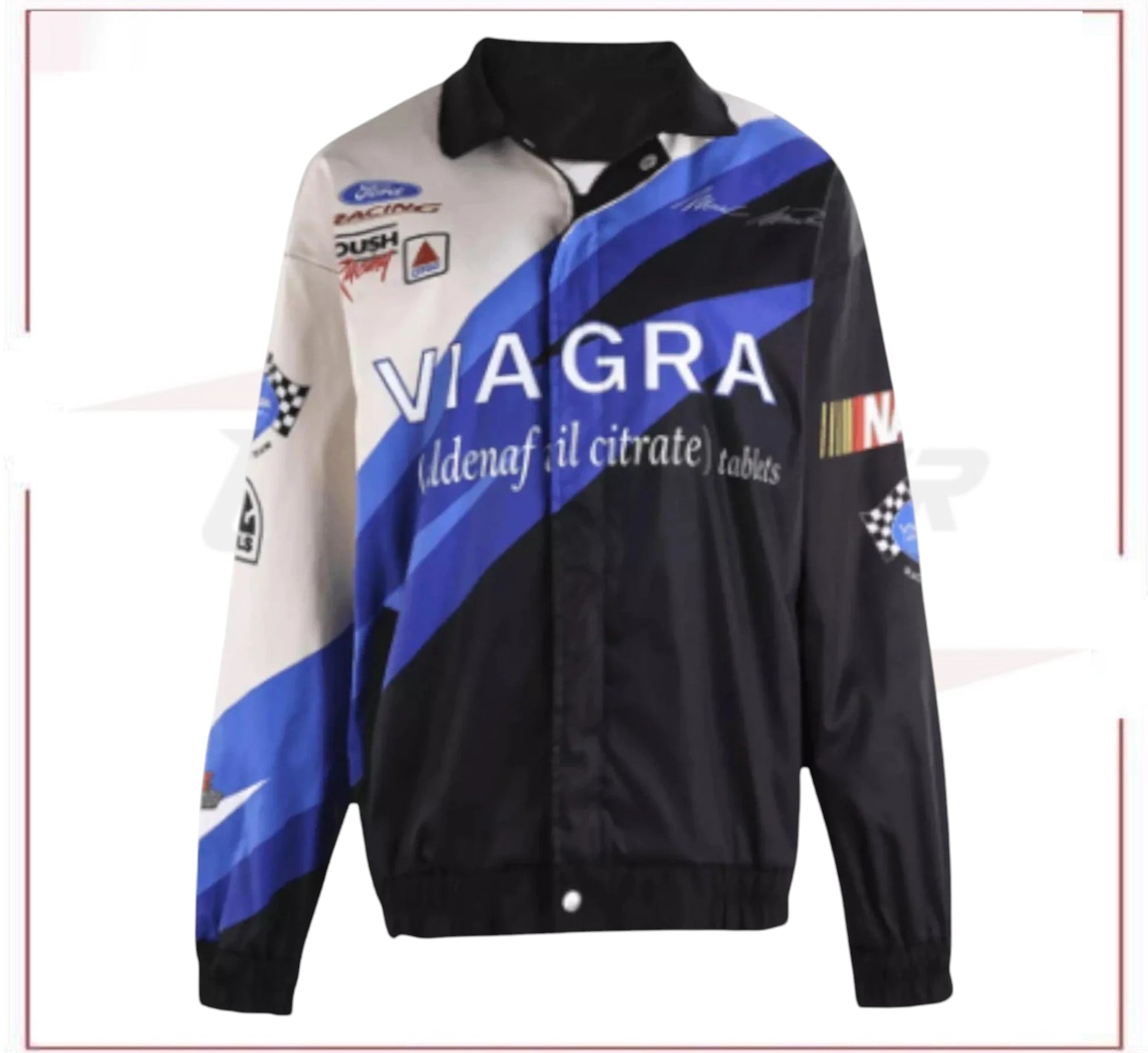 This Viagra Nascar Vintage F1 Racing Jacket combines the iconic style of motorsports with the edgy branding of Viagra. Crafted with high-quality materials, this jacket offers a sleek design and comfortable fit. Perfect for racing enthusiasts and those looking to make a statement.