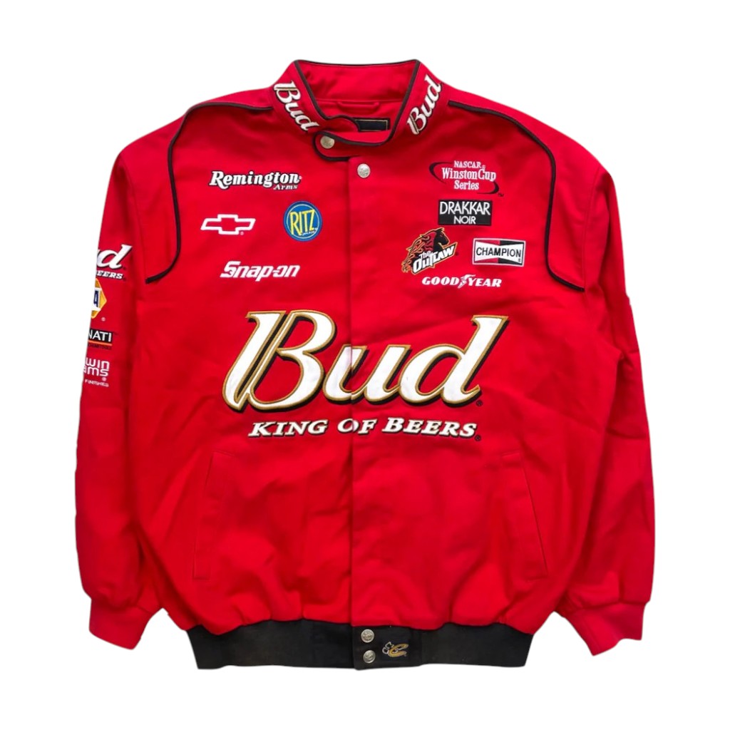 The Vintage Budweiser Nascar Racing Jacket showcases expert sublimation printing that delivers sharp, vibrant graphics designed to last. This jacket pays homage to the legendary Budweiser racing heritage with authentic detailing that captures the spirit of Nascar's golden era. Constructed from durable, comfortable materials, it provides a perfect balance between style and functionality. Whether displayed as a prized collectible or worn to express your racing passion, this jacket sublimation timeless motorsport culture with lasting quality and vintage appeal.