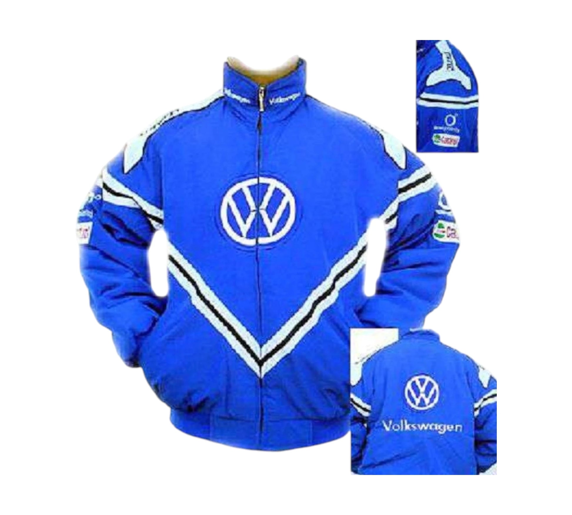 The VW Volkswagen Racing Jacket in Royal Blue with White features high-quality sublimation printing that ensures vibrant colors and lasting durability. Designed for motorsport enthusiasts, this jacket offers a sleek, professional look while providing comfort during races or casual wear. Its precise construction supports ease of movement and breathability, making it ideal for active use. Perfect for fans and drivers alike, it combines style with functionality for a dependable racing apparel choice.