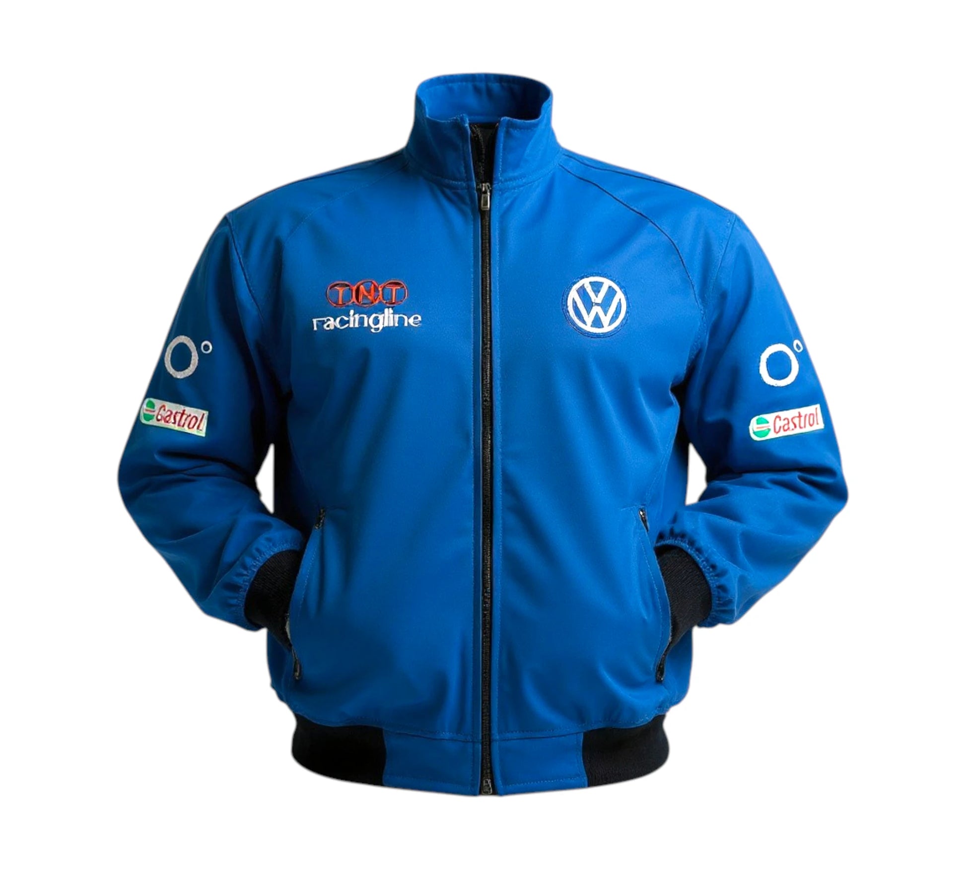 The VW Volkswagen TNT Racing Line Racing Jacket in Royal Blue features vibrant sublimation printing that delivers crisp, lasting graphics without fade. Designed for racing enthusiasts, this jacket offers a sleek fit and durable fabric to withstand intense activity and frequent wear. Its bold color and authentic branding provide a professional look on and off the track. Ideal for fans and drivers alike, the jacket combines style with functional performance to elevate your racing apparel collection.